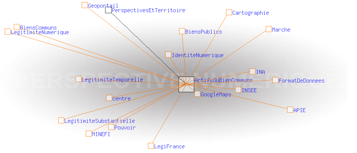 Le territoire et le régime de légitimité temporel Legitimité substantielle: valorisation des actifs ou Biens communs?L’Etat et les collectivités territoriales tentent de réformer leur légitimité substantielle en montrant qu’ils sont les véritables garants de l’intérêt général et des biens publics, matériels et immatériels. A ce titre, l'Etat a entrepris par exemple de restituer aux citoyens les informations dont ils sont la source. Outre le domaine de la cartographie ( Géoportail), c'est aussi le cas en matière d’audio-visuel (INA), de statistique (INSEE), de droit ( LégiFrance), et de finance publique (sites du MINEFI), etc. Cela ne va pas sans difficultés en raison de la confidentialité de certaines données, notamment personnelles, ou du danger supposé que celles-ci soient exploitées ou détournées par des acteurs commerciaux. On retrouve là les questions de concurrence des centres et de l’ identité numérique. Il y a aussi des problèmes techniques, de format de données, etc. Mais au delà se pose un dilemme qui semble être loin de pouvoir être tranché. D’un côté, l’Etat, soucieux de la valorisation de ses actifs pour contribuer à son désendettement, veut faire commerce des biens publics immatériels. C’est ce que prône le rapport Lévy-Jouyet qui a conduit à la création au printemps 2007 de l’Agence du Patrimoine Immatériel de l’État (APIE). De l’autre, il paraît assuré que dès lors que les biens immatériels la collectivité entreraient dans le régime général du marché, ils perdraient immédiatement leur qualité des biens communs. L’Etat et à sa suite les acteurs territoriaux, pourraient à bon droit être considérés comme des entreprises commerciales comme les autres. Ils y perdraient évidemment une part de légitimité substantielle. Ce dilemme ne trouvera probablement pas de résolution dans le cadre du régime de légitimité temporelle qui, en matière d’information, tend à pousser la concurrence des centres jusqu’au paroxysme. Il en serait tout autrement dans un régime de légitimité numérique qui placerait au centre la valeur «lien», et en périphérie, celle du capital. Géoportail: zoom maximum sur la place de la Bastille - présence de la signature incrustée «GEOPORTAIL» GoogleMaps: zoom maximum sur la place de la Bastille (pas de signature incrustée)