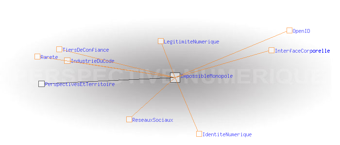 Le territoire aux prises avec le régime de légitimité numérique L'impossible monopoleNon seulement la rareté des codes est amenée à disparaître, mais le régime de légitimité numérique en germe dans le réseau voudrait que ces codes soient contrôlés par les utilisateurs eux-mêmes, y compris et surtout l' identité numérique personnelle. Les premiers à être placés sous cette pression, les plus grands acteurs de l'Internet, se sont déjà engagés dans cette voie en adoptant le protocole libre de gestion de l'identité OpenID. Ce protocole permet à chacun de gérer son identité, là où il le désire, c'est à dire chez un tiers de confiance ou bien sur son propre terminal, et comme il le désire, c'est à dire en contrôlant les fragments de lui-même qu'il montre ou pas, à tel organisme ou tel interlocuteur. Contre toute attente, des multinationales ont donc renoncé à être les dépositaires exclusifs des identités. Bientôt sous la pression du régime de légitimité numérique, elles renonceront aussi au contrôle des réseaux sociaux et aucune industries du code ne pourra prétendre avoir quelque prise que ce soit sur ces données. ![]()