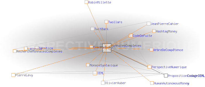 "OlivierAuber discute avec Jean-Pierre Cahier: "pour un programme de recherche sur l'argent complexe" http://tinyurl.com/ckjf3h #hashtagmoney"A propos des monnaies complexes J'ai été ravi de rencontrer le 24 mars 2009 JeanPierreCahier qui dans un article écrit il y a dix ans visualisait parfaitement le l'éclosion des monnaies complexes à laquelle nous assistons et participons aujourd'hui. Malheureusement, le programme de recherche auquel il aspirait n'a jamais été lancé, et c'est un peu à l'aveuglette et dans l'urgence que nous sommes aujourd'hui contraints d'avancer... Le travail d'Eikosant et de Glenux sur Twollars et TwitBank me semble déterminant (merci à eux) pour l'exploration de la notion de HashtagMoney / MonaieSyntaxique? / MonnaiesComplexes / HumanAutonomousMoney . Il me semble aussi qu'il faut faire le lien avec l'IEML et les arbres de compétences de PierreLevy comme possible système de codage des éléments échangés, ainsi qu'avec Laconica? /Identica (Twitter acentré) d' EvanPodromu? et de RobinMillette?, comme possible infostructure. Reste qu'il demeure un océan de questions, en particulier celle évoquée par Jean-Pierre Cahier de la cristallisation de ce qu'il appelle 'l'linstitution de l'argent" au sein de l'interface. A mon sens, en même temps que nous expérimentons la variété des monnaies complexes, nous sommes amenés à faire émerger une sorte de norme d'interopérabilité leur permettant de fonctionner ensemble. Cette norme est pour moi le CodeDeFuite de la PerspectiveNumerique qui s'invente sous nos yeux. C'est un phénomène de portée anthropologique qui ne va pas manquer de convoquer toutes les ressources théoriques et technologiques disponibles. OlivierAuber