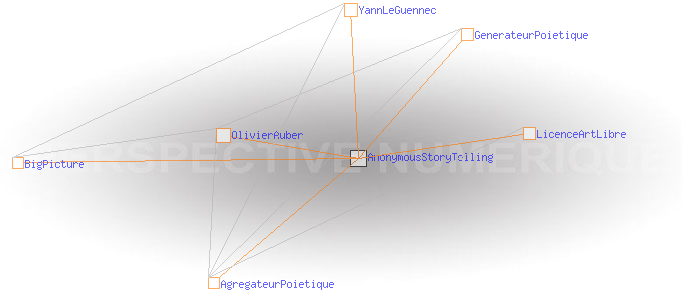 Anonymous StorytellingSome examples, between art and politicsQuelques exemples, entre art et activisme politique. ![]() Source : RWW / Anonymous (2011) Source : Banana République (2008) Copyleft 2005 YannLeGuennec, oeuvre dérivée du Générateur Poïétique 1986-2005 OlivierAuber (LicenceArtLibre?) Source : BIGPICTURE (2006) Agrégateur poïétique by YannLeGuennec 2004 ![]() Source : Générateur Poétique (1986-2011)