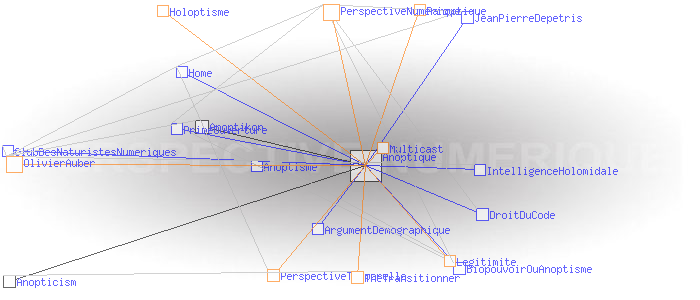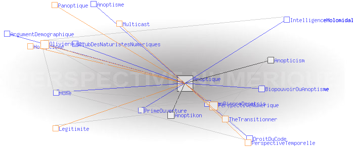 Concept de l'anoptismeAnoptism (english)Le concept d'Anoptisme est bien entendu à l'opposé de celui du " panoptisme", du grec "pan" (tout), qui "est un type d'architecture carcérale imaginée par le philosophe Jeremy Bentham" dont "'l'objectif [...] est de permettre à un individu d'observer tous les prisonniers sans que ceux-ci ne puissent savoir s'ils sont observés, créant ainsi un « sentiment d'omniscience invisible » chez les détenus" (1). Le concept d' "Anoptisme" s'écarte aussi dans une certaine mesure de celui de l'"Holoptisme", du grec "holos" (entier, tout, totalité), qui "consiste en un espace physique ou virtuel dont l'architecture est intentionnellement conçue pour donner à ses acteurs la faculté de voir et percevoir l'ensemble de ce qui s'y déroule" (2). A en juger par l'opposition des racines grecques, on pourrait même croire qu'il y a un antagonisme radical entre Anoptique et Holoptique. Ce n'est pas tout à fait le cas : si l'Anoptisme, comme l'Holoptisme, "visent à fournir à l'individu une représentation modélisée [...] de l'espace dans lequel il évolue" (3), l'Anoptisme fait son deuil de l'idée de "totalité" de cet espace comme de l'"objectivité" de sa représentation , et insiste au contraire sur l'arbitraire et la subjectivité des points de vue qui président aux architectures et aux modèles qui les déterminent. Pour l'Anoptisme, les relations humaines ne sont pas réductibles à la mise en place d'une boucle de rétro-action cybernétique entre le groupe et l'individu ; l'essentiel est définitivement invisible à nos yeux. Le deuil de l'objectivité est rendu supportable par le fait que chacun est potentiellement auteur des points de vue, et acteur des règles et des codes qu'ils mettent en oeuvre. L'Anoptisme entend fonder de cette manière la légitimité d'une " perpective numérique" à mettre en oeuvre au sein des systèmes sociaux. Pratiquement, les réseaux centrés/décentralisés mettent en œuvre une " perspective temporelle" dont le centre est le "point de fuite" d'où émerge le temps subjectif du collectif. Classiquement, ce centre est un serveur. Les réseaux distribués mettent en œuvre une " perpective numérique" dont le "code de fuite" est le protocole sous couvert duquel le collectif échange Exemples: Multicast, BGP, Bitcoin, etc. Ces deux perspectives propres aux réseaux sont dites "anoptiques" en référence à la perspective optique de la Renaissance. Perspective optique et perspectives anoptiques possèdent en effet des caractéristiques symbolique similaires à celles de la perspective optique. En particulier, de la même manière que les Renaissants ont décrit les critères de " construction légitime" de la perspective optique, il possible de définir ceux permettant de créer une "perspective anoptique légitime". Ces critères n'ont plus rien de géométriques comme c'était le cas de la perspective optique, ils sont d'ordre cognitif. Ces idées sont développées dans le livre "Anoptikon, une exploration de l'internet invisible, échapper à la main de Darwin" (FYP éditions 2019) OlivierAuber (1) FrWikiPedia:Panoptique (2) TheTransitionner: Holoptisme (3) Ibid. (4) perspective-numerique.net ANOPTIQUE a aussi été un groupe de recherche informel entre 2004 et 2014 : http://anoptique.com Pages ayant un lien vers la page courante : Anopticism Anoptikon Anoptisme ArgumentDemographique BiopouvoirOuAnoptisme ClubDesNaturistesNumeriques DroitDuCode Home IntelligenceHolomidale JeanPierreDepetris PrimeOuverture