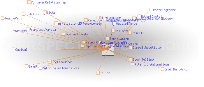 Attention à l'inversion de l'attention!NOTES EnCoursDeRedaction OlivierAuber "Capter l'attention" semble être de devenu l'objectif commun et exclusif, non seulement du marketing et de la publicité - on comprend bien que c'est leur job - mais de toutes les sphères de la vie collective : industrie, finance, média, éducation, politique, et sciences aussi. L' "économie de l'attention" théorisée par Goldhaber avant le web (1989) n'a fait que s'amplifier en trouvant de nouveau supports : jeux 3D massivement multijoueurs, sites sociaux temps réel, etc. Mais certains indices montrent qu'une forme d'acculturation aux stratégies de captation de l'attention émergent sur ces nouveaux supports et pourrait les circonvenir, retourner les rapports capteurs/captés, voire les mettre en déroute...Les stratégies de captation... Régime de fidelisationDurée et répétition? Attention automatique? Fidelisation? RobertCastel? Habituation? ManagementConsumer Relationship Management? Valeur d'otage Régime de l'alerteticker de Callahan? vers 1860 bourse de New York Pantelegraphe de Caselli? vers 1860 Bourse de Paris Tour de NicolasSchoeffer Bretton Woods? 1971 effet de réalité Qualcul? Callon? 1998 réduction tendancielle du taux d’attention? régime de l’immersion Enaction? Francisco Varela StoryTelling? GamePlay? tendre-vers? Hursserl? 1970 Expérience et jugement? Mythologies immersives? transe durable? Affiliations et recompenses? régime de représentation? Erwin Panofsky 1927 REFERENCES BARON-COHEN S., Mindblindness, Cambridge MA, 1995. BARTHES, Roland, « En sortant du cinéma », in le bruissement de la langue , Paris : Seuil, 1984. BOLTANSKI, L. et CHIAPELLO E., Le nouvel esprit du capitalisme, Gallimard (NRF), Paris, 1999. BOLTANSKI, L. et THEVENOT L., De la justification. Les économies de la grandeur, Gallimard (NRF), Paris, 1991. BOULLIER, Dominique, L’urbanité numérique. Essai sur la troisième ville en 2100, Paris: L’Harmattan, 1999. BOULLIER, Dominique.- “ Les conventions pour une appropriation durable des TIC. Utiliser un ordinateur et conduire une voiture ”, Sociologie du Travail, 3/2001, pp. 369-387. BOULLIER, Dominique.- « Le web immersif », Quaderni, n°66, Printemps 2008. BOULLIER, Dominique.- La télévision telle qu’on la parle. Trois études ethnométhodologiques, Paris : L’Harmattan, 2004. BOULLIER Dominique et Frédéric HUET, « Dematerialization in the AV industry, from boxes to attention. A casestudy of a newcomer, Tivo”, Communication and strategies, n° 71, 2008. CALLON, M (ed) (1998), The Laws of the Markets, Oxford : Basil Blackwell COCHOY, Franck.- Une sociologie du packaging ou l’âne de Buridan face au marché, Paris : PUF, 2002. COWAN, N. “Evolving conceptions of memory storage, selective attention ans their mutual constraints with the human information-processing system”, Psychological Bulletin,, 1988, 104, pp. 163-192. CRARY, J. (2000). Suspensions of Perception, Attention, Spectacle, and Modern Culture. Cambridge: MIT Press. GADREY, Jean. Socio-économie des services, Paris : La Découverte, 2003 GILLE, Laurent.-« L'intermédiateur, un nouveau métier », Sociétal, n°23, Décembre 1998 GOLDHABER, Michael H. 1989. "Equality and Education in America Now," In: Education and the American Dream, H. Holtz, I. Marcus, J. Dougherty, J. Michaels, and R. Peduzzi (eds.), Granby, Mass.: Bergin & Garvey, Chapter 6, pp. 70-76 GOLDHABER, Michael H. 1992. "The Attention Society," Release 1.0, ( 26 March), No. 3, E. Dyson (ed.), New York, EDventure Holdings, pp. 1-20 http://www.firstmonday.org/issues/issue2_4/goldhaber/index.html HUSSERL E., Expérience et jugement, trad. franç., Paris, 1970. l’Association pour la Recherche Cognitive, n° 42, p. 39. JAMES, William.- Précis de psychologie, Paris : Les empêcheurs de tourner en rond, 2002 (1ere édition : 1892). KARPIK, Lucien.- L’économie des singularités, Paris : Gallimard, 2007. LAHLOU, Saadi.- “ Les attracteurs cognitifs et le syndrome du débordement ”, Intellectica, n°30, 2000. LATOUR, Bruno et Vincent LEPINAY.- L’économie, science des intérêts passionnés. Introduction à l’anthropologie économique de Gabriel Tarde, Paris : La Découverte, 2008. MANOVICH, Lev (2001), The language of new media, Cambridge, MIT Press. MONSELL,S., & DRIVER, J. (Eds.). (2000). Control of Cognitive Processes. Cambridge, MA: MIT Press. NORMAN, D.A., T. SHALLICE (1984) “Attention to action: willed and automatic control of behavior”, in Schwarz, G., Consciousness and self regulation: New York: Plenum Press ORLEAN, A. (dir.) (1994), Analyse économique des conventions, Paris, PUF. ORLEAN, A. Le pouvoir de la finance, 1999, Paris, Ed. Odile Jacob. PANOFSKY, E. (1991), La perspective comme forme symbolique, Paris, Ed. Minuit, (Première édition, 1927, Perspective as a symbolic form). PREDA, A., « Les hommes de la bourse et leurs instruments merveilleux. Technologies de transmission des cours et origines de l’organisation des marchés. » Réseaux 21/122, 2003, pp.137-165 RIBOT, T. (1889), Psychologie de l'attention, Paris, Felix Alcan. SCHNEIDER W. and Shiffrin, R.M. “Controlled and automatic human information processing. 1: detection, search and attention”, Psychological Bulletin, 1977, 84, pp.1-66. VARELA, F. E. THOMPSON et E. ROSCH, L'Inscription corporelle de l'esprit : sciences cognitives et expérience humaine, Seuil, Paris, 1996