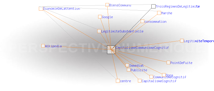 Le régime de légitimité temporel Capitalisme ou Communisme cognitifs?On reconnaît Google, le site le plus fréquenté au monde, comme le modèle même de l’ économie de l’attention et derrière lui, une myriade d’autres sites ou de médias jouant sur d’autres variantes de légitimité. Le modèle le plus opposé, pourrait-on dire, bien qu’il relève de la même économie, est sans doute Wikipédia, l’encyclopédie contributive, 6ème site le plus visité au monde, parce qu’elle substitue à la publicité les dons directs de ses utilisateurs (en argent, en temps ou en connaissances). Dans le cas de Google, les utilisateurs n’ont aucunement conscience d’interagir via un point de fuite et de le nourrir de leur seule attention. Chacun d’eux, réputé être sensible à la publicité, participe à son insu au grand cycle du " capitalisme cognitif" par le simple fait de consommer. En aucun cas, les utilisateurs ne peuvent obtenir une copie intégrale des données que Google capitalise soigneusement, quelque part. Dans le cas de Wikipédia au contraire, les utilisateurs nourrissent consciemment le centre de leurs contributions, et peuvent participer à un degré ou un autre à sa gouvernance. De plus, toutes les données de l’encyclopédie, ainsi que les logiciels qui lui permettent de fonctionner sont disponibles pour tous, immédiatement et dans leur intégralité. En cela, Wikipédia propose une variante de légitimité substantielle plus proche des canons de la légitimité temporelle, non pas fondée sur le marché, mais véritablement sur les biens communs. Certains y voient la naissance d’un " communisme cognitif". ![]() Google: 561 millions de visiteurs uniques en août 2007, +20% / août 2006. Wikipédia: 210 millions de visiteurs uniques en août 2007, +52% / août 2006. Source: ComScore Word Metrix 2007
