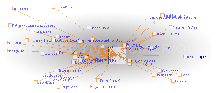 Implicite? Explicite? non-dit? Intelligible? Transparence? Apparences? Ambiguite? Lisibilite? si les réponses sont si faciles d’accès, serait-ce que Dieu s’amuse à nous présenter un monde chiffré pour nous éprouver ? À moins que ne soient les hommes qui s’ingénient à dissimuler pour des raisons inavouables LogiquesDeLaTransparence? semantique? Abduction? Induction? LogiquesNonMotones? Indecidabilite? LogiqueEpistemique? MathematiquesExplicites? Feferman? Frege Tarski Kripke Brouwer? LogiqueIntuitionniste? Essentialisme? Morphisme? Aporie? Godel? Incompletude? OignonCognitif? Kreisel? Mendelsohn? Schonfinkel? Curry? Howard? Gentzen? DomainesDeScott? Scott? LogiqueLineaire? Andreoli? HauptSatz? Gentzen? LaLudique? EspacesCoherents? NegationLineaire? EspacesCoherentsQuantiques? JeanYvesGirard PointAveugle