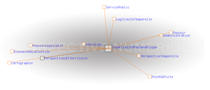 Le territoire et le régime de légitimité temporel Légitimité par impartialité: pas sans risqueEn dépit des efforts consentis, l' e-administration et les e-services publics dérogent aux canons de la légitimité temporelle sur de nombreux points. Pour ce qui est des services traditionnels de l'' e-administration, la centralisation du traitement de l’information réduit toujours plus le nombre de ceux qui peuvent en infléchir les règles, en même temps qu'elle augmente la vitesse avec laquelle ces règles peuvent changer selon les revirements du pouvoir législatif. Cela peut être vu comme un gage de souplesse et d'adaptabilité cohérent avec le regime de légitimité temporel, à condition que la population se reconnaisse dans le point de fuite que le pouvoir lui présente. Le risque est ici de voir se produire une sorte d'ossification des normes politiques et sociales existantes, qui ne donne pas la possibilité au corps social de les réexaminer, et donc de créer au passage de nouvelles relations, de nouveaux sens et de nouvelles solidarités. Pour ce qui est des initiatives de e-services des collectivités, voire de l'Etat ou des ses agences, beaucoup dépassent largement le périmètre traditionnel des services publics. Elles investissent par exemple les domaines du débat public et de la citoyennenté ou bien dans celui de la valorisation du territoire en terme de tourisme, d'urbanisme et d'aménagement, de culture, d'industrie et de services. Pour des raisons de validation de l'information publique, ces e-services peinent à mettre en oeuvre pleinement toutes les possibilités de l'Internet. En particulier ils ne laissent pas les internautes co-construire ou intervenir sur les cartes sociales ou géographiques comme le font beaucoup de sites privés ou communautaires. Le risque est là que ces e-services exerçent une concurrence sur les services similaires proposés par lesdits acteurs privés ressentis parfois comme plus légitimes par les internautes. Certains de ces acteurs privés, implantés sur le territoire visé, sont ainsi freinés dans leur développement économique. En résumé, à la lumière de la perspective temporelle, l'écueil qui guette tous les e-services territoriaux et l'' e-administration est qu'ils fassent figure de rhétorique institutionnelle ou de communication électorale, bref qu'ils appraissent comme de purs produits de l’ économie de l’attention.