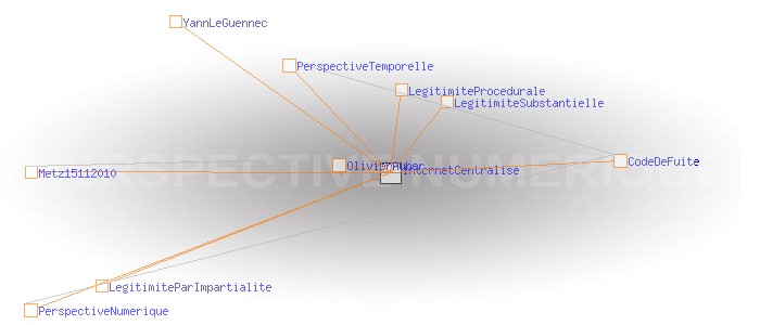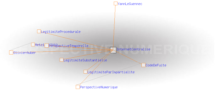 Black cross is made with your IP address, by YannLeGuennec (Archive) Internet centralisé? hiérachique? acentré?Une petite note en passant à propos des projets de DNS P2PJe ne suis pas le seul à écrire que l'internet est centralisé, et Bortzmeyer ne pourra pas dire que celui-là (Huitema) est un "ignorant" Cela dit, il faut se mettre d'accord sur ce que veut dire mot "centralisé" utilisé de manière lapidaire dans un tweet ou dans un billet de blog. Techniquement, l'internet, en particulier son espace de nommage, est effectivement "hiérarchique", mais tel qu'il est structuré pour le moment, il crée une situation politiquement "centralisée", en dépit des déclarations de Rod Beckstrom qui voudrait éviter qu'elle n'apparaisse trop comme telle. Il me semble que l'une des grandes vertus de l'affaire Wikileaks pourrait être de mettre à découvert pour l'entendement du plus grand nombre, la structure et le fonctionnement de l'internet, non pas bien entendu dans ses détails techniques, mais politiques et imaginaires, et de forcer ses parties prenantes à travailler ensemble sur la "légitimité" des " perspectives anoptiques" mises en oeuvre par le réseau. Des pistes existent pour le système de nommage puisse passer un jour d'une " perspective temporelle" (physiquement centralisée à l'instant T d'une mise à jour majeure) à une " perspective numérique" physiquement acentrée mais admettant une nouvelle règle du jeu comme " code de fuite". Quoi qu'il en soit, il faudra bien s'interroger sur les critères de légitimité de cette perspective: