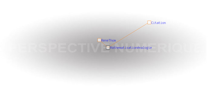 "L’analogie, la métaphore, contrairement à la vision commune qui en fait quelque chose d’approximatif, de flou, m’apparaît comme une relation stricte et que l’on peut, dans bien des cas, exprimer mathématiquement [..] La vieillesse est le soir de la vie [..] La structure formelle de cette analogie, c’est simplement la notion de bord. Vous avez là un intervalle temporel ; cet intervalle a une fin ; on l’appelle "soir" ou " vieillesse" le voisinage tubulaire, si j’ose dire, du mot " fin", et la catastrophe correspondante est pour moi le pli." ReneThom Importé depuis l'adresse http://jeanzin.fr/ecorevo/philo/pretapen/thom.htm