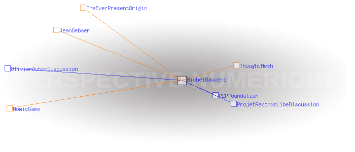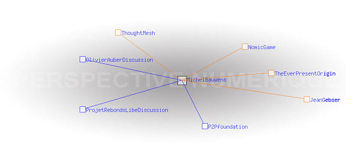 JeanGebser: TheEverPresentOrigin?. = une histoire des perspectives NomicGame?: jeu dans lequel on peut changer les regles http://anoptique.com/concept.html ThoughtMesh http://del.icio.us/rss/mbauwens