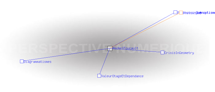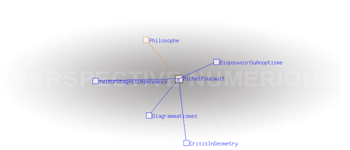 Michel FoucaultPaul Michel Foucault, né le 15 octobre 1926 à Poitiers et mort le 26 juin 1984 à Paris, est un philosophe français. Il fut, entre 1970 et 1984 titulaire d'une chaire au Collège de France à laquelle il donna le titre d'Histoire des Systèmes de Pensée. http://fr.wikipedia.org/wiki/Michel_Foucault Philosophe Pages ayant un lien vers la page courante : BiopouvoirOuAnoptisme CrisisInGeometry Diagrammatismes ValeurOtageEtDependance