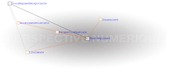 Un modèle agissantLa perspective spatiale de la Renaissance a objectivé un modèle sensible de la relation du temps à l'espace, le support du tableau étant déjà là pour le diffuser. L’Internet donne à son tour un support totalement nouveau pour l'exercice des mécanismes ancestraux relatifs à l'information et au code. Pour la première fois, ceux-ci peuvent être quantifiés, mesurés, et visualisés. Et ils ne manquent pas d'être aussi instrumentalisés. Comme l'a fait la perspective spatiale pour le temps et l'espace, les perspectives temporelle et numérique sont susceptibles de fournir à tous des règles simples permettant de se situer dans les processus liés à l'information et au code de façon à pouvoir en évaluer les configurations et retrouver une certaine autonomie par rapport à eux. Cela passe par la modélisation des cités idéales que ces processus construisent implicitement et qui agissent au niveau de notre inconscient sur la manière dont nous percevons notre monde et dont nous agissons sur lui. Ces nouvelles cités idéales prennent comme modèle celle de la perspective spatiale, mais les régimes de légitimité qui en découlent sont très différents.