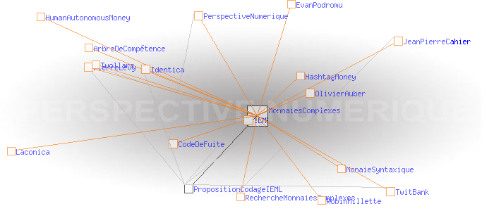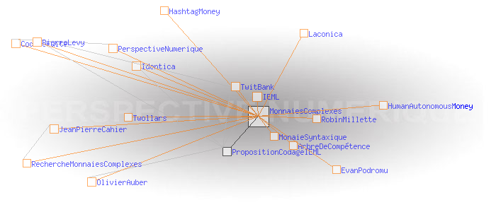 "OlivierAuber discute avec Jean-Pierre Cahier: "pour un programme de recherche sur l'argent complexe" http://tinyurl.com/ckjf3h #hashtagmoney"A propos des monnaies complexes J'ai été ravi de rencontrer le 24 mars 2009 JeanPierreCahier qui dans un article écrit il y a dix ans visualisait parfaitement le l'éclosion des monnaies complexes à laquelle nous assistons et participons aujourd'hui. Malheureusement, le programme de recherche auquel il aspirait n'a jamais été lancé, et c'est un peu à l'aveuglette et dans l'urgence que nous sommes aujourd'hui contraints d'avancer... Le travail d'Eikosant et de Glenux sur Twollars et TwitBank me semble déterminant (merci à eux) pour l'exploration de la notion de HashtagMoney / MonaieSyntaxique? / MonnaiesComplexes / HumanAutonomousMoney . Il me semble aussi qu'il faut faire le lien avec l'IEML et les arbres de compétences de PierreLevy comme possible système de codage des éléments échangés, ainsi qu'avec Laconica? /Identica (Twitter acentré) d' EvanPodromu? et de RobinMillette?, comme possible infostructure. Reste qu'il demeure un océan de questions, en particulier celle évoquée par Jean-Pierre Cahier de la cristallisation de ce qu'il appelle 'l'linstitution de l'argent" au sein de l'interface. A mon sens, en même temps que nous expérimentons la variété des monnaies complexes, nous sommes amenés à faire émerger une sorte de norme d'interopérabilité leur permettant de fonctionner ensemble. Cette norme est pour moi le CodeDeFuite de la PerspectiveNumerique qui s'invente sous nos yeux. C'est un phénomène de portée anthropologique qui ne va pas manquer de convoquer toutes les ressources théoriques et technologiques disponibles. OlivierAuber
