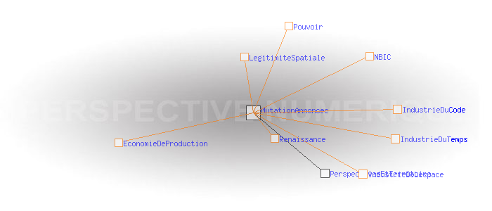 Mutation annoncéeAprès la Renaissance, le régime de légitimité spatial et les « industries de l'espace», les plus à même de gérer les sols, les choses et les gens, ont longtemps gardé leur primauté. Le tournant vers d'autres perspectives a eu lieu au cours de la révolution industrielle qui marqua le passage d’une économie de production basée essentiellement sur l’exploitation de l’espace (l’agriculture) à une autre, fondée de plus en plus sur le code (les produits manufacturés, les marques, les brevets) et sur le temps (presse d'abord, puis téléphone, radio et télévision). Bien entendu, cette typologie n'est pas exclusive ; toutes les industries du temps, du code et de l' espace sont dans certaines mesures les trois à la fois. Aujourd'hui, les nouvelles industries temps et du code nées avec l'avènement de l'Internet et plus généralement avec des technologies NBIC, ne sont pas véritablement industrielles au sens propre. Dans chacune des catégories, on peut trouver aussi bien des multinationales, des petites sociétés ou des artisans, seuls ou réunis en réseau. Toutes sont placées désormais sous la pression des régimes de légitimités temporel et numérique. Comment les pouvoirs territoriaux, anciennes industries de l'espace entrées à leur tour dans le réseau, subissent la même pression? Dans quelle mesure ils se conforment à leurs normes. Comment leurs formes de légitimité intrinsèques mutent-elles ou seront-elles amenées à le faire?