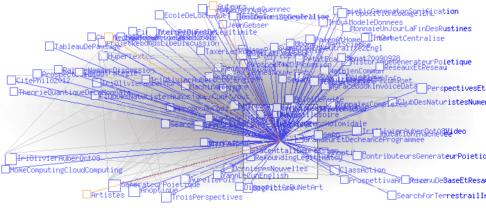 Olivier Auber(note rédigée en 2010, mise à jour en 2019)![]() Photo by Yann Minh, Licence Art Libre, compatible CC by Sa. Artist and independent researcher, affiliated to the Center Leo Apostel for Interdisciplinary Studies at the Vrije Universiteit Brussel (CLEA) / Evolution, Complexity and COgnition group (ECCO), and at Global Brain Institute. QUID ? (en français dans le texte) Je suis une sorte de chercheur indépendant dans le domaine de l’expérimentation culturelle et des réseaux. Indépendant, oui, mais je suis amené à travailler en liaison avec de nombreux laboratoires de recherche dans des domaines très variés. Certains de mes projets passés ou en cours sont présentés sur la plate-forme KM2.NET. J'ai fondé deux sociétés : le Laboratoire Culturel A+H qui a produit pas mal de jolis projets architecturaux et muséographiques, et Navidis, spécialisée dans la représentation cartographique et en réalité virtuelle de territoires. Puis il m'arrive de faire le consultant, en Afrique, au Moyen-Orient ou ailleurs. Tout cela peut sembler très proche de la technique, mais ce qui m’intéresse est la place que celle-ci peut avoir dans notre vie, réelle ou imaginaire. Ma grande idée s’intitule la Perspective Numérique. C’est bien d’avoir une grande idée dans la vie. C’est pas tous les jours facile à vivre mais ça réchauffe le cœur quand il fait froid dehors. Et puis on s’y raccroche quand on ne comprend plus rien, ce qui m’arrive souvent, bien évidemment. L’un de mes plus anciens projets se nomme le Générateur poiétique. Il s’agit à la fois d’une expérience d'interaction collective temps réel sur les réseaux, et d’une recherche, disons, sur la position anthropologique que ces réseaux sont susceptibles de prendre dans l'avenir. Participer à une session du Générateur poïétique est à mon sens une bonne manière de saisir ce qu’est cette grande idée : la Perspective Numérique prolonge la perspective spatiale inventée à la Renaissance. Il n’est plus question ici de « points de fuite » mais de « codes de fuite ». Les fuyantes sont elles transformées en « temps de fuite ». Quel rapport avec le plancher des vaches ? Très simple : dans l’internet, les territoires sont définis par des codes ; des codes sources, des adresses ip, des clés cryptographiques, etc. Chaque territoire, organisé selon une forme plus ou moins visible de Perspective Numérique, tend à s’auto reproduire suivant un processus autopoïétique. Et tous ces territoires en relation les uns avec les autres forment eux-mêmes un seul et même système autopoïétique. Mon but dans la vie est de contribuer à mettre quelques esprits en marche* et de renforcer ceux qui sont déjà en route. Nouveau : je viens de publier deux bouquins : ANOPTIKON, une exploration de l'internet invisible (FYP édition (2019) (très sérieux) et Le futur de l'avion (FYP édition 2020) (juste pour rire). (*) ce truc a été écrit bien avant Macron et n'a définitivement rien à voir avec lui ;-) EN SAVOIR PLUS