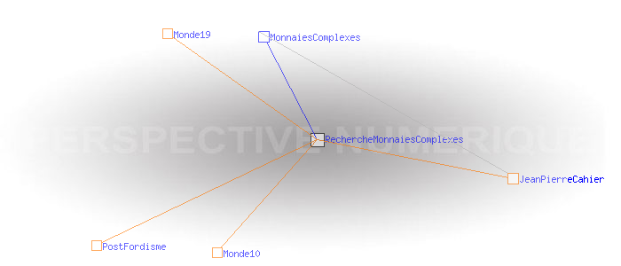Pour un programme de recherche sur l’argent complexepar JeanPierreCahier (1), 1999.version imprimable (pdf) Résumé. Les échanges, les mondes de justification, les grandeurs et les valeurs relèvent de multiples vues et dimensions. Comment la monnaie pourrait-elle refléter ou exprimer cette complexité ? Il existe des points communs avec les réponses qu’apporte le logiciel pour représenter l’information complexe. La monnaie apparaît comme un langage. C’est un objet dont la structure est susceptible de ruptures et qui intéresse toutes les sciences humaines. L’institution qui la régit est un système de connaissances et de compétences associant notamment des individus, des groupes humains, des systèmes de notation, de transmission des connaissances et d’échange. Aujourd’hui pour l’essentiel en dehors de l’objet «argent», cette institution pourrait prendre place partiellement à l’intérieur de cet objet, grâce à l’encapsulation permise par les techniques numériques. Car la technologie n’est pas de reste: en quête d’une «technologie intellectuelle» de rechange pour l’économie, le cybermonde pourrait véhiculer un «hyperargent» avec de multiples noeuds et dimensions. Concrètement, sur le plan informatique, un «montant complexe» pourrait être représenté par un type d’objet à définir, comportant une certaine intelligence et une certaine autonomie, et réalisable avec les technologies actuelles. Avertissement: Le statut de ce texte est celui d’un chantier, inachevé sur la forme et sur le fond, auquel son auteur, fort occupé par d’autres tâches, ne peut consacrer beaucoup de temps. Il ne s’agit pas de la concrétisation d’un programme de recherche sur «l’argent complexe», mais d’un appel (qui se voudrait convaincant) pour que soit engagé sur le sujet un vrai plan de travail, la nuance est importante... De plus, le sujet convoque trop de disciplines pour que l’auteur puisse espérer les maîtriser toutes, ni même peut-être une seule d’entre elles ! Indulgence est donc demandée au lecteur, en particulier aux spécialistes, pour la présentation peu formelle et les inévitables maladresses, naïvetés, contradictions et erreurs. Toute réaction, critique, aide ou information complémentaire est évidemment la bienvenue (Jean-Pierre.Cahier@wanadoo.fr). Le texte est construit en spirale, suivant en gros l’ordre chronologique de sa construction progressive depuis 1994. SommaireRésumé Avertissement Introduction. 1) Constats. 2) La «pesée unique». 3) Besoins, urgences. 4) En quête de nouveaux repères. 5) Remue-méninges. 6) Rester réaliste ? 7) Hypothèse de l’argent 2D. 8) Quelles leçons des SEL ? 9) Quelles régulations? 10) Une «technologie intellectuelle» ? 11) Projection. 12) Argent = langage ? 13) Simuler dès aujourd’hui des cas. 14) Déporter l’institution dans l’objet. 15) La piste des «objets» informatiques. 16) Pour finir, un exemple. Annexes, bibliographie, liens Introduction.Pour compter la monnaie, il suffit de savoir se servir du calcul avec des nombres - décimaux, relatifs, réels... - qui ont jusqu’ici toujours comporté une seule dimension mathématique. Cette solution à une dimension (1D) est une technique très efficace, qui a réussi à nous accompagner depuis longtemps. Elle sert de dénominateur commun à toutes sortes de transactions entre les humains, jouant son rôle dans des réalités économiques et humaines très compliquées. L’argent 1D joue ces rôles complexes car il est une technique simple, acquise facilement dès l'enfance, avec des procédures de base comprises par tout le monde. Le 1D de la monnaie s'est imposé et s'imposera tant qu'il fournira le meilleur support à l’expression des valeurs marchandes, aux régulations et aux échanges. Seulement, des voix s'élèvent aussi pour dire que le système actuel fonctionne mal ou approche de sa limite d'usure, sans qu'on sache trop comment le remplacer. Le concept de base de la monnaie porte peut-être sa part de responsabilité. Trop simpliste, notre façon de compter la monnaie et de chiffrer la valeur sur un seul axe s'accorde mal avec la diversité des échelles de valeur, avec notre monde complexe et ses nouvelles urgences. Un jour, l'écriture prévalut sur la parole pour la transmission des connaissances, et de nos jours ce sont l’image, l’ordinateur et la Toile qui sont en train de révolutionner à nouveau les outils d’intelligence collective. La monnaie échappe-t’elle à cette mobilité ? Ses bases conceptuelles et mathématiques sont-elles immuables? Ne sont elles pas déjà, d’une certaine façon, en train de changer ? De nouvelles façons de traiter les échanges surgiront elles ? Ne peut-on faire appel aux technologies de l’image, de la couleur, de l’intelligence artificielle, des cartes à puces et des assistants portables... pour supporter des langages d’expression de la valeur plus élaborés que les chiffres ? D’où l’idée d’un chantier de réflexion, interdisciplinaire et ouvert, autour du fil conducteur de la «monnaie complexe». L'idée, encore très marginale, est au carrefour des très nombreux champs concernés: scientifiques, philosophiques, politiques, mais aussi littérature, poésie, théâtre, jeux de société... 1) Constats. Pour entrer progressivement dans le sujet, quelques considérations qui semblent enfoncer des portes ouvertes, tant elles sont banales: a) Divers points de vue sont acceptables simultanément sur la valeur d’un produit, d’un travail, d’une activité. Chacun peut en trouver de multiples exemples autour de lui et beaucoup de projets en cours mettent en jeu cette pluralité [(13), (14), (19), (20), (27), (28)...]. Ainsi la valeur d’une entreprise peut s’apprécier autant par son résultat que par sa contribution à la préservation de l’environnement ou sa création de lien social; le «bilan sociétal» est par exemple 