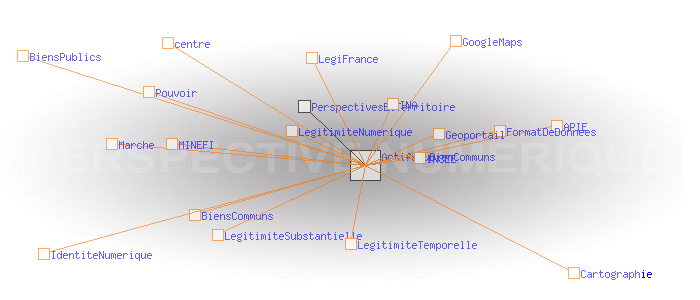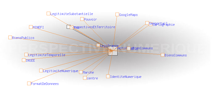 Le territoire et le régime de légitimité temporel Legitimité substantielle: valorisation des actifs ou Biens communs?L’Etat et les collectivités territoriales tentent de réformer leur légitimité substantielle en montrant qu’ils sont les véritables garants de l’intérêt général et des biens publics, matériels et immatériels. A ce titre, l'Etat a entrepris par exemple de restituer aux citoyens les informations dont ils sont la source. Outre le domaine de la cartographie ( Géoportail), c'est aussi le cas en matière d’audio-visuel (INA), de statistique (INSEE), de droit ( LégiFrance), et de finance publique (sites du MINEFI), etc. Cela ne va pas sans difficultés en raison de la confidentialité de certaines données, notamment personnelles, ou du danger supposé que celles-ci soient exploitées ou détournées par des acteurs commerciaux. On retrouve là les questions de concurrence des centres et de l’ identité numérique. Il y a aussi des problèmes techniques, de format de données, etc. Mais au delà se pose un dilemme qui semble être loin de pouvoir être tranché. D’un côté, l’Etat, soucieux de la valorisation de ses actifs pour contribuer à son désendettement, veut faire commerce des biens publics immatériels. C’est ce que prône le rapport Lévy-Jouyet qui a conduit à la création au printemps 2007 de l’Agence du Patrimoine Immatériel de l’État (APIE). De l’autre, il paraît assuré que dès lors que les biens immatériels la collectivité entreraient dans le régime général du marché, ils perdraient immédiatement leur qualité des biens communs. L’Etat et à sa suite les acteurs territoriaux, pourraient à bon droit être considérés comme des entreprises commerciales comme les autres. Ils y perdraient évidemment une part de légitimité substantielle. Ce dilemme ne trouvera probablement pas de résolution dans le cadre du régime de légitimité temporelle qui, en matière d’information, tend à pousser la concurrence des centres jusqu’au paroxysme. Il en serait tout autrement dans un régime de légitimité numérique qui placerait au centre la valeur «lien», et en périphérie, celle du capital. Géoportail: zoom maximum sur la place de la Bastille - présence de la signature incrustée «GEOPORTAIL» GoogleMaps: zoom maximum sur la place de la Bastille (pas de signature incrustée)