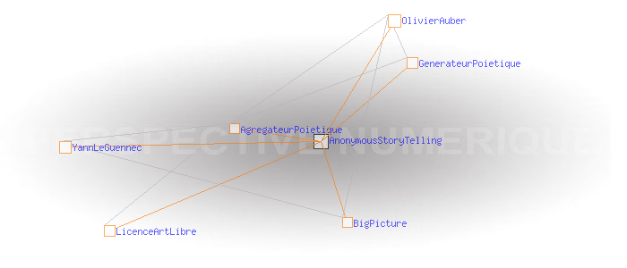 Anonymous StorytellingSome examples, between art and politicsQuelques exemples, entre art et activisme politique. ![]() Source : RWW / Anonymous (2011) Source : Banana République (2008) Copyleft 2005 YannLeGuennec, oeuvre dérivée du Générateur Poïétique 1986-2005 OlivierAuber (LicenceArtLibre?) Source : BIGPICTURE (2006) Agrégateur poïétique by YannLeGuennec 2004 ![]() Source : Générateur Poétique (1986-2011)