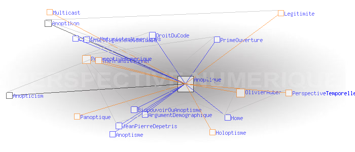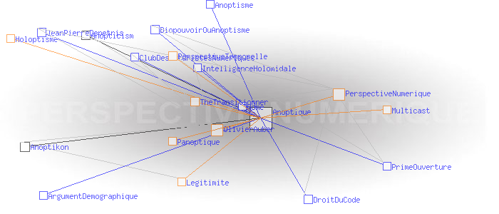 Concept de l'anoptismeAnoptism (english)Le concept d'Anoptisme est bien entendu à l'opposé de celui du " panoptisme", du grec "pan" (tout), qui "est un type d'architecture carcérale imaginée par le philosophe Jeremy Bentham" dont "'l'objectif [...] est de permettre à un individu d'observer tous les prisonniers sans que ceux-ci ne puissent savoir s'ils sont observés, créant ainsi un « sentiment d'omniscience invisible » chez les détenus" (1). Le concept d' "Anoptisme" s'écarte aussi dans une certaine mesure de celui de l'"Holoptisme", du grec "holos" (entier, tout, totalité), qui "consiste en un espace physique ou virtuel dont l'architecture est intentionnellement conçue pour donner à ses acteurs la faculté de voir et percevoir l'ensemble de ce qui s'y déroule" (2). A en juger par l'opposition des racines grecques, on pourrait même croire qu'il y a un antagonisme radical entre Anoptique et Holoptique. Ce n'est pas tout à fait le cas : si l'Anoptisme, comme l'Holoptisme, "visent à fournir à l'individu une représentation modélisée [...] de l'espace dans lequel il évolue" (3), l'Anoptisme fait son deuil de l'idée de "totalité" de cet espace comme de l'"objectivité" de sa représentation , et insiste au contraire sur l'arbitraire et la subjectivité des points de vue qui président aux architectures et aux modèles qui les déterminent. Pour l'Anoptisme, les relations humaines ne sont pas réductibles à la mise en place d'une boucle de rétro-action cybernétique entre le groupe et l'individu ; l'essentiel est définitivement invisible à nos yeux. Le deuil de l'objectivité est rendu supportable par le fait que chacun est potentiellement auteur des points de vue, et acteur des règles et des codes qu'ils mettent en oeuvre. L'Anoptisme entend fonder de cette manière la légitimité d'une " perpective numérique" à mettre en oeuvre au sein des systèmes sociaux. Pratiquement, les réseaux centrés/décentralisés mettent en œuvre une " perspective temporelle" dont le centre est le "point de fuite" d'où émerge le temps subjectif du collectif. Classiquement, ce centre est un serveur. Les réseaux distribués mettent en œuvre une " perpective numérique" dont le "code de fuite" est le protocole sous couvert duquel le collectif échange Exemples: Multicast, BGP, Bitcoin, etc. Ces deux perspectives propres aux réseaux sont dites "anoptiques" en référence à la perspective optique de la Renaissance. Perspective optique et perspectives anoptiques possèdent en effet des caractéristiques symbolique similaires à celles de la perspective optique. En particulier, de la même manière que les Renaissants ont décrit les critères de " construction légitime" de la perspective optique, il possible de définir ceux permettant de créer une "perspective anoptique légitime". Ces critères n'ont plus rien de géométriques comme c'était le cas de la perspective optique, ils sont d'ordre cognitif. Ces idées sont développées dans le livre "Anoptikon, une exploration de l'internet invisible, échapper à la main de Darwin" (FYP éditions 2019) OlivierAuber (1) FrWikiPedia:Panoptique (2) TheTransitionner: Holoptisme (3) Ibid. (4) perspective-numerique.net ANOPTIQUE a aussi été un groupe de recherche informel entre 2004 et 2014 : http://anoptique.com Pages ayant un lien vers la page courante : Anopticism Anoptikon Anoptisme ArgumentDemographique BiopouvoirOuAnoptisme ClubDesNaturistesNumeriques DroitDuCode Home IntelligenceHolomidale JeanPierreDepetris PrimeOuverture