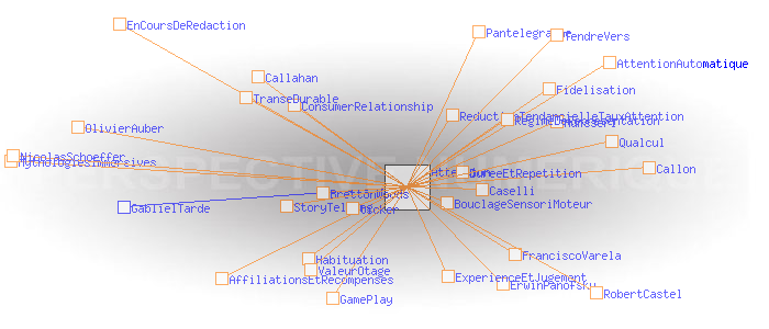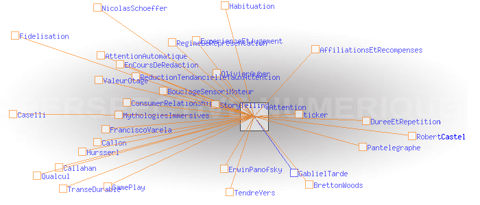 Attention à l'inversion de l'attention!NOTES EnCoursDeRedaction OlivierAuber "Capter l'attention" semble être de devenu l'objectif commun et exclusif, non seulement du marketing et de la publicité - on comprend bien que c'est leur job - mais de toutes les sphères de la vie collective : industrie, finance, média, éducation, politique, et sciences aussi. L' "économie de l'attention" théorisée par Goldhaber avant le web (1989) n'a fait que s'amplifier en trouvant de nouveau supports : jeux 3D massivement multijoueurs, sites sociaux temps réel, etc. Mais certains indices montrent qu'une forme d'acculturation aux stratégies de captation de l'attention émergent sur ces nouveaux supports et pourrait les circonvenir, retourner les rapports capteurs/captés, voire les mettre en déroute...Les stratégies de captation... Régime de fidelisationDurée et répétition? Attention automatique? Fidelisation? RobertCastel? Habituation? ManagementConsumer Relationship Management? Valeur d'otage Régime de l'alerteticker de Callahan? vers 1860 bourse de New York Pantelegraphe de Caselli? vers 1860 Bourse de Paris Tour de NicolasSchoeffer Bretton Woods? 1971 effet de réalité Qualcul? Callon? 1998 réduction tendancielle du taux d’attention? régime de l’immersion Enaction? Francisco Varela StoryTelling? GamePlay? tendre-vers? Hursserl? 1970 Expérience et jugement? Mythologies immersives? transe durable? Affiliations et recompenses? régime de représentation? Erwin Panofsky 1927 REFERENCES BARON-COHEN S., Mindblindness, Cambridge MA, 1995. BARTHES, Roland, « En sortant du cinéma », in le bruissement de la langue , Paris : Seuil, 1984. BOLTANSKI, L. et CHIAPELLO E., Le nouvel esprit du capitalisme, Gallimard (NRF), Paris, 1999. BOLTANSKI, L. et THEVENOT L., De la justification. Les économies de la grandeur, Gallimard (NRF), Paris, 1991. BOULLIER, Dominique, L’urbanité numérique. Essai sur la troisième ville en 2100, Paris: L’Harmattan, 1999. BOULLIER, Dominique.- “ Les conventions pour une appropriation durable des TIC. Utiliser un ordinateur et conduire une voiture ”, Sociologie du Travail, 3/2001, pp. 369-387. BOULLIER, Dominique.- « Le web immersif », Quaderni, n°66, Printemps 2008. BOULLIER, Dominique.- La télévision telle qu’on la parle. Trois études ethnométhodologiques, Paris : L’Harmattan, 2004. BOULLIER Dominique et Frédéric HUET, « Dematerialization in the AV industry, from boxes to attention. A casestudy of a newcomer, Tivo”, Communication and strategies, n° 71, 2008. CALLON, M (ed) (1998), The Laws of the Markets, Oxford : Basil Blackwell COCHOY, Franck.- Une sociologie du packaging ou l’âne de Buridan face au marché, Paris : PUF, 2002. COWAN, N. “Evolving conceptions of memory storage, selective attention ans their mutual constraints with the human information-processing system”, Psychological Bulletin,, 1988, 104, pp. 163-192. CRARY, J. (2000). Suspensions of Perception, Attention, Spectacle, and Modern Culture. Cambridge: MIT Press. GADREY, Jean. Socio-économie des services, Paris : La Découverte, 2003 GILLE, Laurent.-« L'intermédiateur, un nouveau métier », Sociétal, n°23, Décembre 1998 GOLDHABER, Michael H. 1989. "Equality and Education in America Now," In: Education and the American Dream, H. Holtz, I. Marcus, J. Dougherty, J. Michaels, and R. Peduzzi (eds.), Granby, Mass.: Bergin & Garvey, Chapter 6, pp. 70-76 GOLDHABER, Michael H. 1992. "The Attention Society," Release 1.0, ( 26 March), No. 3, E. Dyson (ed.), New York, EDventure Holdings, pp. 1-20 http://www.firstmonday.org/issues/issue2_4/goldhaber/index.html HUSSERL E., Expérience et jugement, trad. franç., Paris, 1970. l’Association pour la Recherche Cognitive, n° 42, p. 39. JAMES, William.- Précis de psychologie, Paris : Les empêcheurs de tourner en rond, 2002 (1ere édition : 1892). KARPIK, Lucien.- L’économie des singularités, Paris : Gallimard, 2007. LAHLOU, Saadi.- “ Les attracteurs cognitifs et le syndrome du débordement ”, Intellectica, n°30, 2000. LATOUR, Bruno et Vincent LEPINAY.- L’économie, science des intérêts passionnés. Introduction à l’anthropologie économique de Gabriel Tarde, Paris : La Découverte, 2008. MANOVICH, Lev (2001), The language of new media, Cambridge, MIT Press. MONSELL,S., & DRIVER, J. (Eds.). (2000). Control of Cognitive Processes. Cambridge, MA: MIT Press. NORMAN, D.A., T. SHALLICE (1984) “Attention to action: willed and automatic control of behavior”, in Schwarz, G., Consciousness and self regulation: New York: Plenum Press ORLEAN, A. (dir.) (1994), Analyse économique des conventions, Paris, PUF. ORLEAN, A. Le pouvoir de la finance, 1999, Paris, Ed. Odile Jacob. PANOFSKY, E. (1991), La perspective comme forme symbolique, Paris, Ed. Minuit, (Première édition, 1927, Perspective as a symbolic form). PREDA, A., « Les hommes de la bourse et leurs instruments merveilleux. Technologies de transmission des cours et origines de l’organisation des marchés. » Réseaux 21/122, 2003, pp.137-165 RIBOT, T. (1889), Psychologie de l'attention, Paris, Felix Alcan. SCHNEIDER W. and Shiffrin, R.M. “Controlled and automatic human information processing. 1: detection, search and attention”, Psychological Bulletin, 1977, 84, pp.1-66. VARELA, F. E. THOMPSON et E. ROSCH, L'Inscription corporelle de l'esprit : sciences cognitives et expérience humaine, Seuil, Paris, 1996