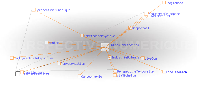 Partie I - Trois perspectivesPerspective temporelle et cartographie interactive #3 Autres territoiresLa " cartographie interactive", qui propose sous une forme ou une autre une interactivité collective immédiate relativement à un référentiel, fonctionne suivant le schéma de perspective temporelle. Elle percute les logiques territoriales et les centres habituels puisqu'elle permet à des groupes répartis d’exister, c’est à dire de se représenter ou d’être représentés à leur insu, indépendamment de leur localisation physique. Mais il faut bien observer qu’elle le fait simplement en attachant le groupe à un nouveau centre, en l'occurrence à un serveur, et donc à une infrastructure matérielle située ici ou ailleurs, sur un autre territoire . La perspective temporelle produit donc une sorte de déplacement de territoire, et donc une perte d'influence des anciens centres au profit de nouveaux. En matière de cartographie, cette concurrence s'observe dans la bataille que se livrent les GoogleMaps, Live.com, ViaMichelin, Géoportail et beaucoup d'autres, qui luttent pour assurer leur sphère d'influence. Avec l’irruption de la perspective temporelle, des pans entiers des " industries de l'espace" sont en train de muter en " industries du temps". Selon la conjecture perspectiviste, le succès relatif des uns et des autres sera largement tributaire du caractère «légitime» - ou pas - de la perspective temporelle que ces industries mettent en œuvre, et de leur capacité de mutation en regard d’une troisième perspective: la perspective numérique.
