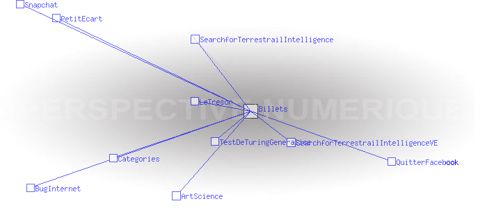 ArtScience BugInternet Categories LeTresor PetitEcart QuitterFacebook SearchforTerrestrailIntelligence SearchforTerrestrailIntelligenceVE Snapchat TestDeTuringGeneralise