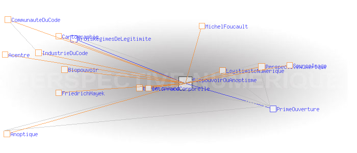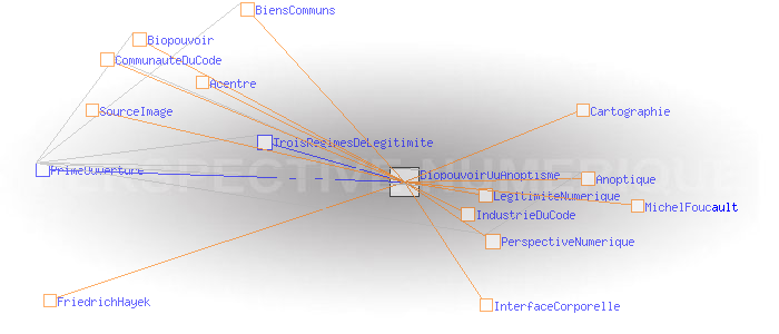 Le régime de légitimité numérique Biopouvoir ou Anoptisme?Les réseaux acentrés rendent caduque dans une certaine mesure la notion d’opérateur de télécommunications. Ils donnent par contre une importance déterminante aux interfaces avec le corps qui restent les seuls objets matériels intervenant dans la boucle des échanges. L’interface constitue en quelque sorte le cadre à travers lequel l’information circulant sur le réseau peut être appréhendée. Et comme tout cadre, elle ouvre la vision, et la restreint, tout à la fois. Dans le régime idéal de la perspective numérique, les interfaces avec le corps ne devraient pas enfermer les utilisateurs ni dans certains codes, ni dans certaines règles. Elles devraient être réversibles. Idéalement, leurs plans de construction devraient être connus de tous, de façon à ce qu’ils puissent être changés. En d'autres termes, leur technologie devrait être versée au bien commun universel. Dans la réalité, tout ou presque laisse penser que les choses vont dans le sens inverse. Dans leur immense majorité, les industries du code pratiquent le secret et brevètent les logiciels, les agencements moléculaires et le vivant. Rien de semble être en mesure d'enrayer la "dérive totalitaire inhérente à la démocratie illimitée" ( Friedrich Hayek). Tout semble annoncer l'avènement du " biopouvoir" ( Michel Foucault). Mais de petits signes montrent que le régime de légitimité numérique commence à avoir une certaine influence. Des industriels comprennent que le cercle vertueux de l’ouverture des normes, des données et des réseaux, peut générer toujours plus de confiance, de lien, et donc d’échanges et d’activités. Partout, des communautés du code cherchent une alternative ; l' anoptisme? ![]() Wikicity : cartographie des connections cellulaires rétroagissant sur le comportement des utilisateurs, Rome, septembre 2007. Source : Senseable City, MIT.