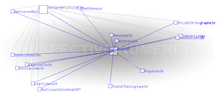 AlchimieIA DernieresNouvelles IAetArtistes IAetMonnaie InconscientIA LegitimacyIA LegitimiteIA MensongeIA MulticastSelonChatGPT PhiloEtOrthographeIA PsittacismeIA PsychoseIA StatutTheologiqueIA SyndicatDesIAs TortureArtificielle