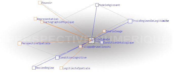 Cité idéalePeu après l’invention de la perspective par Filippo Brunelleschi, Leon Battista Alberti et Piero della Franscesca, ont poussé ses principes géométriques dans leurs retranchements. Ils en ont déduit le modèle de la " cité idéale" construit suivant des règles géométriques dites " légitimes". ![]() La cité idéale (1475), Piero della Francesca. Source: Wikipédia. Cette sorte de mise en coupe réglée de la représentation qui s’exprime dans la cité idéale constitue un modèle de référence calqué sur nos modes de perception qui agit encore en nous de manière inconsciente. Sans un mot, ce modèle donne à chacun des règles claires pour se situer dans l’espace et dans la durée. Sans grande théorie, il procure à tous un instrument permettant de mesurer en un clin d’œil l'écart entre le schéma idéal et la réalité des usages. Il permet donc aussi d'apprécier les jeux de distorsion que l'on fait subir, tant aux représentations esthétiques, qu’à leurs correspondances sociales et politiques. En cela, la perspective spatiale et la cartographie physique ont constitué un outil pédagogique puissant ayant contribué à refonder les identités individuelles et collectif collectives issues des codes religieux et des hiérarchies politiques du Moyen Age. Depuis la Renaissance, elles sont acceptées comme la norme de représentation et le cadre implicite de l'action des hommes inscrits dans leur territoire comme de leur souverain local. La perspective a donc, à la fois, induit, normé et instrumenté, une certaine structure du pouvoir politique. En d'autres termes, les conditions géométriques qui doivent être remplies pour que la perspective soit considérée comme légitime, ont institué un certain régime de légitimité du pouvoir et de la représentation territoriale que l'on peut appeler le " régime de légitimité spatial".