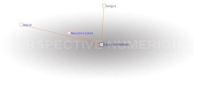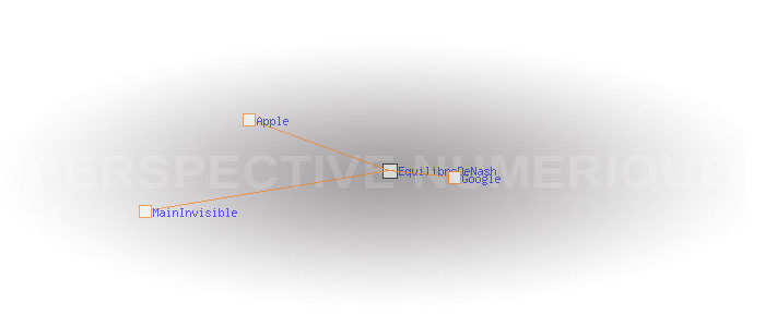 ![]() Equilibre de Nash "Deux marchands de glace doivent choisir un emplacement sur une plage de longueur donnée. Les prix et les produits étant les mêmes, chaque client ira vers le marchand le plus proche de lui. Il est facile de se rendre compte que le seul équilibre de Nash pour ces deux marchands sera celui où ils sont tous deux côte à côte au centre de la plage, bien que ce soit la position la moins adéquate pour la satisfaction de leur clientèle. Cet exemple est souvent cité comme pendant négatif de la main invisible d'Adam Smith." Wikipedia ![]() Google Apple