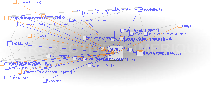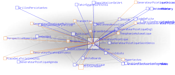 Générateur PoïétiqueLANCER UNE PARTIE DE GENERATEUR POIETIQUE (sur PC/mac ou mobile) DE QUOI S'AGIT-IL? Ecouter l'explication sur Place de la Toile (France Culture) Place de la Toile, 10 avril 2011, Olivier Auber by OlivierAuber Voir un bon résumé sur Wikipédia (FR) ou (EN) Derrière ce nom étrange se cache une expérience collective très simple et très enrichissante pour les enfants de 7 à 77 ans. En fait, ça marche déjà à partir de 3 ans avec accompagnateur. Il s'agit de dessiner à plusieurs sur une même image. On ne peut pas dessiner partout, chacun dessine sur la surface qui lui est affectée composée de 20 par 20 pixels. On connait des expériences ou chacun peut dessiner partout. Le problème est que c'est le chaos au delà de deux personnes simultanément. Dans le Générateur Poïétique au contraire, un dessin global s'auto-organise petit à petit avec des dizaines, des centaines, voire des milliers(*) de participants, sans qu'il soit nécessaire d'imposer préalablement un thème. Plus on est nombreux en même temps sur l'image, plus c'est drôle et intéressant. Les traces de chacun sont enregistrées au fur et à mesure si bien que l'on peut revoir ensuite toutes les phases d'élaboration du dessin. Il s'agit moins d'une expérience picturale - ce n'est pas le "beau" qui est visé - qu'une manière de donner à chacun un moyen d'éprouver les mécanismes qui sont à l’œuvre dans une interaction collective. En particulier le mimétisme joue un grand rôle, et ça se voit, ce qui peut donner ensuite l'occasion de discuter de ce qui se passe dans les cours de récréation ou les marchés financiers ;-) Cette expérience est gratuite. Elle n'a aucun caractère commercial. Le logiciel et les images réalisées sont diffusés sous couvert de la Licence Art Libre. Elle est soutenue par le réseau Apprendre 2.0 qui s'intéresse à son caractère pédagogique. (*) Il existe une version a centrée du générateur poïétique qui permettrait de rassembler plusieurs milliers de participants en simultané. Malheureusement l'Internet tel qu'il est aujourd'hui ne permet pas sa mise en oeuvre. cf. Multicast Ressources complémentairesSOURCES:© 1886-2007 Olivier Auber Copyleft (Licence Art Libre) TAG: Oeuvre | Larsen Ontologique | Théophanie automatique PerspectiveNumerique Admin serveur GenerateurPoietiqueEngl