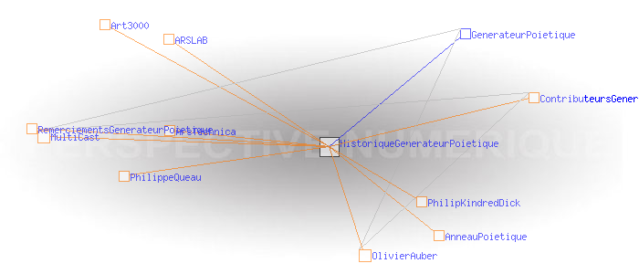 Petite histoire factuelle du Générateur Poïétique (1986-2008)par OlivierAuberPremière illustration du concept, 1986![]() L'idée du Générateur Poïétique m'est venue en 1986, alors que je concevais des expositions et des installations interactives pour divers musées, la cité des sciences en particulier. Le déclic s'est produit précisément à la lecture de "SIVA", un livre de Philip K. Dick qui constituait la trame d'un opéra de musique contemporaine composé par Tod Machover (MIT-Medialab) que j'assistais à l'époque pour sa création à l'IRCAM et au centre Georges Pompidou. En s'appuyant sur les premières expériences réalisées dans le cadre d'expositions artistiques, le Générateur Poïétique s'est transformé peu à peu en un projet à long terme selon trois axes : développer un outil libre et non-commercial dédié à l'interaction graphique collective en réseau, à la recherche sur les phénomènes collectifs temps réel, et à la réflexion philosophique. L'indépendance est un chemin difficile. Les progrès furent lents. Mais grâce à l'appui et aux contributions de nombreuses personnes (cf. contributeurs) et dans une moindre mesure de quelques institutions et sociétés, le concept s'est matérialisé. Je profite de cette occasion pour remercier du fond du coeur tous ceux qui depuis tant d'années se sont montrés d'un si grand secours (cf. Remerciements). Avant que l'Internet n'existe tel qu'on le connait aujourd'hui, le Générateur Poïétique a été présenté en dans des configurations locales en s'appuyant le système français du Minitel. Il a été présenté ainsi au centre Georges Pompidou en 1990 (exposition "communication et monumentalité") puis à la Cité des Sciences et de l'Industrie en 1992 (exposition "Machines à communiquer"). Quelques années plus tôt, en 1988, il fut aussi le concept majeur d'un projet de "monument de la communication" (l' Anneau Poïétique"), l'un des septs lauréats du concours du Symbole France-Japon organisé par Philippe Quéau. En 1995, plusieurs chercheurs de l'Ecole Nationale Supérieure des Télécommunications" (ENST, Paris) et l'école elle-même contribuèrent au projet en même temps que d'autres chercheurs indépendants et que Sun Microsystems. La première mise en oeuvre sur l'Internet fut ainsi réalisée sur le "MultiCast Backbone (Mbone)", ce qui permit de réaliser pour la première fois au monde une expérience planétaire d'interaction collective synchrone acentrée (cf. images ci-dessous). La version pour le Mbone a été présentée en avant première aux "Etats Généraux de l'Ecriture Multimédia" organisés par l'association Art3000? à la vidéothèque de Paris en 1995. La même année, le Générateur Poïétique a reçu le premier prix "art et science" décerné par l'association ArsTechnica? / ARSLAB? et la ville de Turin. Malheureusement, malgré des débuts prometteurs qui ont révélé son immense potentiel, le Mbone ne s'est pas ouvert au grand public, ce qui interdit encore à ce jour (2008) de mener à bien des expériences de grande envergure. C'est en désespoir de cause, qu'une version pour le web a été développée en 1997 afin de rendre le Générateur Poïétique accessible à tous. Un grand nombre d'expériences ont été menées depuis lors. Malgré la limitation technique du nombre de participants inhérente à l'existence d'un serveur central, elles ont montré les capacités morphogénétiques du dispositif. Cela n'est que la première épape d'un long travail de mise au point et d'expérimentation d'un instrument opérationnel de recherche sur les phénomènes collectifs... The Poietic Ring Project- version II (site view) , Kobe, Japan, 1989. Laureate of the France-Japan Symbol contest.![]() The Poietic Ring Project- version II (oniric view), Kobe, Japan, 1989. Lauréat du concours du Symbole France-Japon.![]() The Poietic Ring Project- version II (CAD view) , Kobe, Japan, 1989. Lauréat du concours du Symbole France-Japon.![]() 1 st public implementation. Exhibition "Communication & Monumentalité". Centre Georges Pompidou. Centre de création industrielle. Paris, 1990.![]() 2 nd public implementation. landscape installation , Bretagne, France, 1990.![]() 3 rd public implementation. Festival des media. Marne la Vallée, 1991.![]() 4 th public implementation. Exhibition "Machines à communiquer". Cité des Sciences anet de l' Industrie. Paris, 1992![]() 5 th public implementation. Gallery Patrick Martin. Lyon. France, 1995.![]() First worldwide Multicast announcement. LBL session directory, Wed Feb 28th, 1996.![]() ![]() ![]() Second worldwide Multicast announcement. UCL session directory, Tue May 21st, 1996.![]()