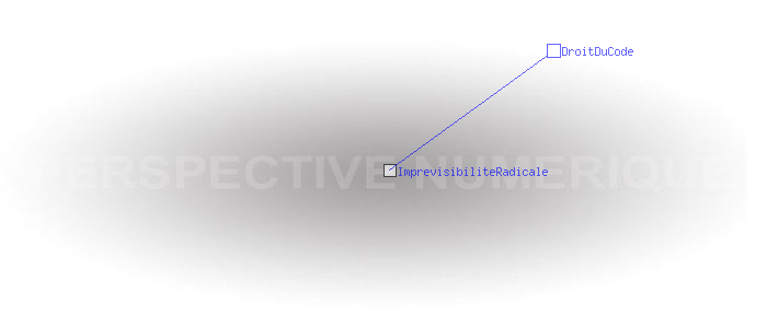 DroitDuCode note brouillon en passant L'imprévisiblité radicale est le régime essentiel de la réalité contemporaine, en tant que seule modalité de pensée partageable. Elle implique de nombreuses modifications de nos représentations et en particulier, en rendant le point de vue de la conscience individuelle imprévisible lui-même, elle induit une forme d'instabilité de toute chose, vue d'un point indéterminé. Seul l'imaginaire est capable d'embrasser cette hyper-perspective, la conscience réflexive est un miroir tourné vers l'imaginaire. L'instabilité radicale de l' "ici et maintenant" ne trouve de possibilité d'expression qu'à travers l'imaginaire comme constituant fondateur du réel. "Ce que cela exprime [...] est que le réel exclut le possible ; qu’il n’y a pas de possible et que le possible est une idée imaginaire [ Clément Rosset dans la revue de Téhéran revue culturelle iranienne en langue française http://bit.ly/uJIrz thanx @fdegouzon design fiction http://www.google.fr/search?q=design+fiction