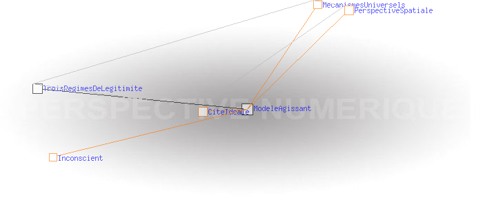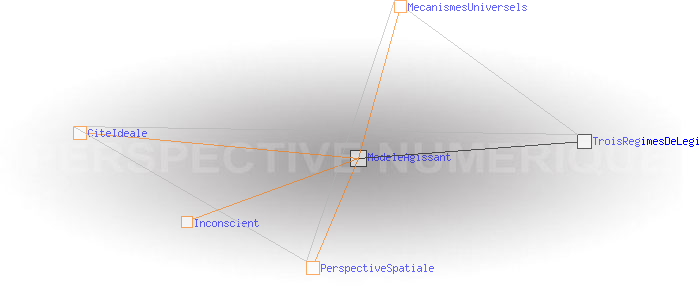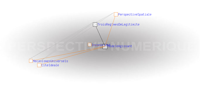Un modèle agissantLa perspective spatiale de la Renaissance a objectivé un modèle sensible de la relation du temps à l'espace, le support du tableau étant déjà là pour le diffuser. L’Internet donne à son tour un support totalement nouveau pour l'exercice des mécanismes ancestraux relatifs à l'information et au code. Pour la première fois, ceux-ci peuvent être quantifiés, mesurés, et visualisés. Et ils ne manquent pas d'être aussi instrumentalisés. Comme l'a fait la perspective spatiale pour le temps et l'espace, les perspectives temporelle et numérique sont susceptibles de fournir à tous des règles simples permettant de se situer dans les processus liés à l'information et au code de façon à pouvoir en évaluer les configurations et retrouver une certaine autonomie par rapport à eux. Cela passe par la modélisation des cités idéales que ces processus construisent implicitement et qui agissent au niveau de notre inconscient sur la manière dont nous percevons notre monde et dont nous agissons sur lui. Ces nouvelles cités idéales prennent comme modèle celle de la perspective spatiale, mais les régimes de légitimité qui en découlent sont très différents.