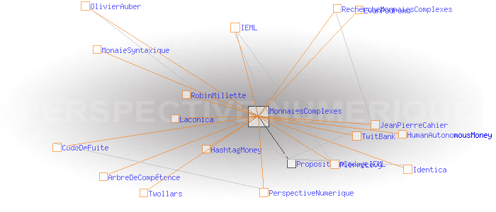 "OlivierAuber discute avec Jean-Pierre Cahier: "pour un programme de recherche sur l'argent complexe" http://tinyurl.com/ckjf3h #hashtagmoney"A propos des monnaies complexes J'ai été ravi de rencontrer le 24 mars 2009 JeanPierreCahier qui dans un article écrit il y a dix ans visualisait parfaitement le l'éclosion des monnaies complexes à laquelle nous assistons et participons aujourd'hui. Malheureusement, le programme de recherche auquel il aspirait n'a jamais été lancé, et c'est un peu à l'aveuglette et dans l'urgence que nous sommes aujourd'hui contraints d'avancer... Le travail d'Eikosant et de Glenux sur Twollars et TwitBank me semble déterminant (merci à eux) pour l'exploration de la notion de HashtagMoney / MonaieSyntaxique? / MonnaiesComplexes / HumanAutonomousMoney . Il me semble aussi qu'il faut faire le lien avec l'IEML et les arbres de compétences de PierreLevy comme possible système de codage des éléments échangés, ainsi qu'avec Laconica? /Identica (Twitter acentré) d' EvanPodromu? et de RobinMillette?, comme possible infostructure. Reste qu'il demeure un océan de questions, en particulier celle évoquée par Jean-Pierre Cahier de la cristallisation de ce qu'il appelle 'l'linstitution de l'argent" au sein de l'interface. A mon sens, en même temps que nous expérimentons la variété des monnaies complexes, nous sommes amenés à faire émerger une sorte de norme d'interopérabilité leur permettant de fonctionner ensemble. Cette norme est pour moi le CodeDeFuite de la PerspectiveNumerique qui s'invente sous nos yeux. C'est un phénomène de portée anthropologique qui ne va pas manquer de convoquer toutes les ressources théoriques et technologiques disponibles. OlivierAuber