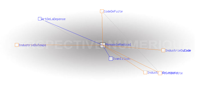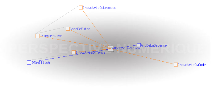 Monopole radicalLe monopole radical est une notion descriptive et critique de la société moderne de consommation et de productivisme. Développée par Ivan Illich, elle désigne non pas la situation monopolistique d'une marque particulière mais le monopole induit d'une ou plusieurs marques visant à modifier, contrôler et à terme contraindre des populations à modifier radicalement (d'où l'épithète « radical ») leurs habitudes quotidiennes notamment en restreignant leurs choix et leurs libertés. Le monopole radical touche à tous les domaines de la vie quotidienne mais essentiellement ceux qui impliquent nécessairement un acte participatif d'achat et de consommation. Il impose ainsi de nouvelles habitudes alimentaires, vestimentaires, des contraintes dans la manière de se déplacer (marche à pied et vélo vaincus par les véhicules motorisés), d'aller au spectacle (toute puissance de la télévision),... http://fr.wikipedia.org/wiki/Monopole_radical IvanIllich PointDeFuite CodeDeFuite IndustrieDeLespace IndustrieDuTemps IndustrieDuCode