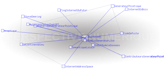 MulticastPosts that contain Multicast per day for the last 30 days. Get your own chart! Multicast videoconferencing (équivalent acentré de http://mebeam.com): http://www-nrg.ee.lbl.gov/vic/ Technologie du Multicast IP http://www.infres.enst.fr/~dax/multicast.html Applications Multicast (dont le Générateur Poietique (gp) http://www.infres.enst.fr/~dax/guides/multicast/mdownload.html http://fr.wikipedia.org/wiki/Multicast GenerateurPoietique Pages ayant un lien vers la page courante : Anoptique CodeDeFuite ContributeursGenerateurPoietique FingInternetDuFutur GenerateurPoietique HistoriqueGenerateurPoietique InOutModeleDonnees InternetAddressSpace InternetEnBois LeContinentBleu MulticastSelonChatGPT PoieticGeneratorLike SemantiqueLocale SteveDeering