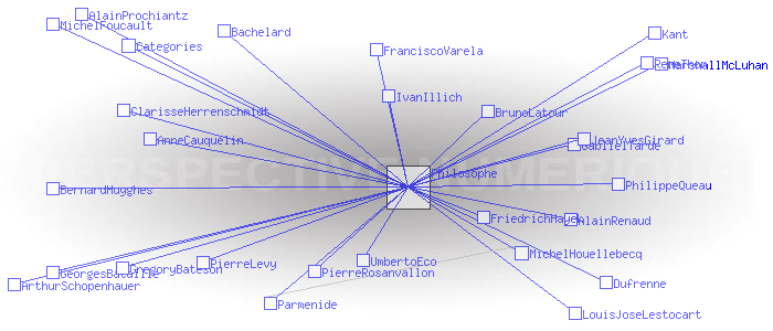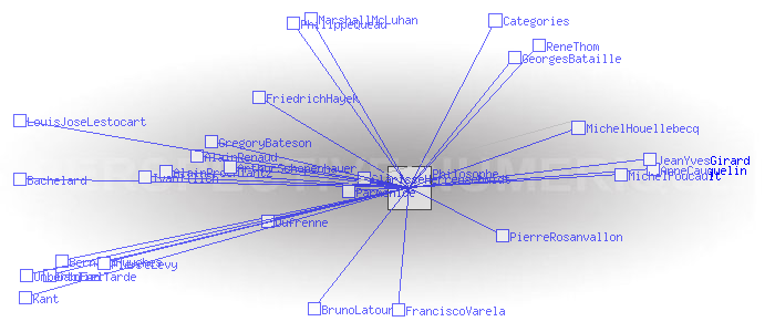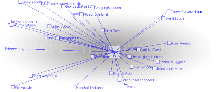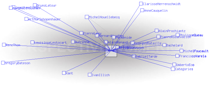 Philosophes citésRetour la liste des catégories Pages ayant un lien vers la page courante : AlainProchiantz AlainRenaud AnneCauquelin ArthurSchopenhauer Bachelard BernardHuyghes BrunoLatour ClarisseHerrenschmidt Dufrenne FranciscoVarela FriedrichHayek GablielTarde GeorgesBataille GregoryBateson IvanIllich JeanYvesGirard Kant LouisJoseLestocart MarshallMcLuhan MichelFoucault MichelHouellebecq Parmenide PhilippeQueau PierreLevy PierreRosanvallon ReneThom UmbertoEco