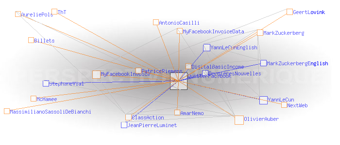 - - - - PRESSE Makery, Elsa Rerrreira : Alors comme ça, on veut quitter Facebook? http://www.makery.info/2018/03/27/alors-comme-ca-on-veut-quitter-facebook/ Business Insider, Marie Turcan : Un chercheur français vient de lancer une initiative pour facturer 350.000Mds$ à Facebook pour l'utilisation de vos données personnelles http://www.businessinsider.fr/olivier-auber-facture-facebook-donnees-personnelles Usbek & Rica : « Facebook nous prend en otage » https://usbeketrica.com/article/facebook-nous-prend-en-otage Le Soir (BE): D’après un chercheur, Facebook doit 350.000 milliards de dollars à ses utilisateurs http://geeko.lesoir.be/2018/02/01/dapres-un-chercheur-facebook-doit-350-000-milliards-de-dollars-a-ses-utilisateurs/ Le nouvelliste (CH) : Réseaux sociaux: Facebook doit 350 0000 milliards à ses utilisateurs, selon un chercheur https://www.lenouvelliste.ch/articles/monde/reseaux-sociaux-facebook-doit-350-0000-milliards-a-ses-utilisateurs-selon-un-chercheur-733282 Les Numériques, Mathieu Chartier : Un membre de Facebook présente une facture de 350 000 $ à Zuckerberg https://www.lesnumeriques.com/vie-du-net/membre-facebook-presente-facture-350-000-dollars-a-zuckerberg-n71039.html ![]() Source : Andrei Lacatusu Autres échanges de mails ou de messages privés Lettre à JeanPierreLuminet (astrophysicien) et ami sur FB. Lettre à StephaneVial (philosophe) et ami sur FB. Echange avec AntonioCasilli (sociologue, spécialiste du Digital Labor), collègue et ami. Echange avec AureliePols (Ethics Advisory Group at European Data Protection Supervisor) Echange avec MassimilianoSassoliDeBianchi? (chercheur en physique quantique), collègue et ami. AmarNemo (artiste) Mail de GeertLovink (théoricien des médias) sur nettime Mail de PatriceRiemens (activiste historique) sur nettime ... à suivre Toutes les bêtises que j'ai pu dire sur Facebook de 2011 à 2018 sont stockées là : http://perspective-numerique.net/Facebook2011-2018/html/timeline.htm http://perspective-numerique.net/Facebook2011-2018/html/photos.htm http://perspective-numerique.net/Facebook2011-2018/html/videos.htm http://perspective-numerique.net/FacebookGP2011-2018/timeline/index.htm http://perspective-numerique.net/FacebookGP2011-2018/photos/index.htm http://perspective-numerique.net/FacebookGP2011-2018/videos/index.htm Cependant Le gros problème de la récupération des données personnelles proposée par FB, c'est qu'elle est loin d'être complète. Il manque :