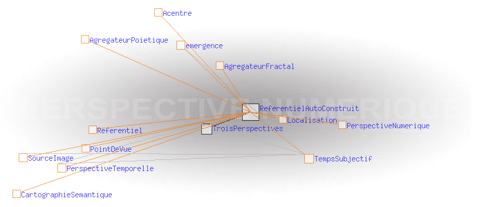 Partie I - Trois perspectivesPerspective numérique et cartographie sémantique #3 Référentiel auto construitAprès que la perspective temporelle a décorrélé le temps et l'espace, en donnant corps à un temps subjectif construit par l'activité collective, la perspective numérique fait de l'espace une valeur émergeant de la même manière. Les terminaux mobiles (ou pas) qui sont aussi les routeurs du réseau, se "voient" les uns les autres et peuvent se localiser de proche en proche par triangulation. Chacun est ainsi en mesure d'établir la carte de tous les autres selon un point de vue qui lui est propre. La perspective numérique ouvre ainsi la voie à un troisième type de cartographie que l'on pourrait qualifier de " cartographie sémantique". Selon un principe d'auto géo localisation, le référentiel peut être auto construit en flux tendu à l'intérieur du réseau. Le cas échéant, il peut reproduire la géographie physique, mais aussi toutes sortes d'autres géographies sémantiques propres aux échanges humains et machiniques ainsi qu'à leur environnement. ![]() Carte des réseaux sans fil des USA Source : Cybergeographe La cartographie sémantique apparaît donc comme d’une importance déterminante pour le développement des réseaux acentrés. C’est grâce à elle que pourront émerger des échanges les structures permettant de s’y repérer. ![]() Agrégateur Poïétique et Agrégateur fractal?: cartographie sémantique d’un collectif dispersé échangeant sous couvert d’un ensemble de tags (codes). Source : ANOPTIQUE