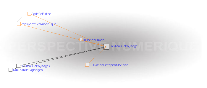 Nous pouvons bien dire, alors, que ce qui nous permet de saisir la réalité du monde, dans sa cohérence et son unité pour nous est un système de règles dites «perspectivistes » , d‘abord mises en place par des artistes pour être ensuite intériorisées comme normes. Nous voyons et sentons le monde comme un tableau de paysage, cadré, dense, cohérent , et ce qui a été maîtrisé par cette construction. Et l’incroyable prégnance de ce schéma tient sans doute en ce qu’il semble maîtriser le sentiment diffus d’hétérogénéité, d’altérité, d’incohérence que le divers du monde nous offrirait sans lui (4). Cependant, cette construction perspectiviste, et j’aimerais dire « paysagère », à laquelle nous nous fions pour ce qui est de notre vie courante, et qui, ainsi que je l’ai souligné, nous rend le monde en quelque sorte habitable, commence à révéler certaines faiblesses : elle ne semble plus convenir à la perception d’un monde que les nouvelles technologies de la communication ont bouleversé. En effet, ce qui est donné en simultanéité dans la vision globale du tableau de paysage doit être détaillé et construit en plans successifs pour représenter la distance réelle entre proche et lointain. C’est au prix de cette contradiction intime que l’ illusion paysagère perspectiviste peut être maintenue. Le global noué au local par une série de règles de montage, ainsi se présente le tableau-monde que nous appréhendons. Or, rien de tel avec l’espace des télécommunications actuelles, car dans un espace où la cible visée est immédiatement touchée, nul besoin de représenter la distance qui sépare la requête de sa satisfaction ; qu’elle soit proche ou lointaine, la cible aura, du point de vue spatial, la même définition : elle ne sera pas située en perspective et aucune carte de type géographique ne peut la représenter. Non seulement à cause de l’étendue illimitée de l’espace cybernétique (une partie seulement du net étant utilisée et visualisable en tant que sites web), mais aussi à cause de la fugacité et de la mobilité des repères, qui inciteraient à dresser de cet espace une topographie plutôt qu’une cartographie statique, encore que celle-la privilégie le processus et laisse intacte la définition d’un espace-support (5). Seule serait efficace le recours à une autre sorte de perspective, disjointe du spatial ; celle d’une mise en rapport de la requête avec un « code de fuite » représentant le moyen d’accès à la satisfaction de la demande. Cette même perspective qu’ Olivier Auber dans son intervention ici-même, appelle perspective numérique.