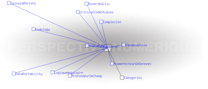 VracRetour la liste des catégories Pages ayant un lien vers la page courante : Codology Complexite CriticalCodeStudies DataPortability EnversDuClic HommeVecteurDeDonnees LogiqueAngulaire ProfondeurDeChamp SpinozaMoniste ThatsMyMouse VandanaShiva