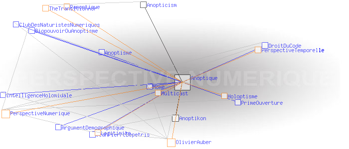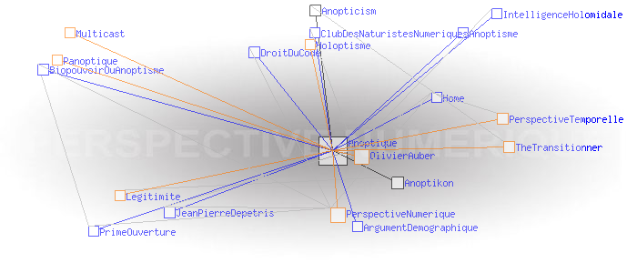 Concept de l'anoptismeAnoptism (english)Le concept d'Anoptisme est bien entendu à l'opposé de celui du " panoptisme", du grec "pan" (tout), qui "est un type d'architecture carcérale imaginée par le philosophe Jeremy Bentham" dont "'l'objectif [...] est de permettre à un individu d'observer tous les prisonniers sans que ceux-ci ne puissent savoir s'ils sont observés, créant ainsi un « sentiment d'omniscience invisible » chez les détenus" (1). Le concept d' "Anoptisme" s'écarte aussi dans une certaine mesure de celui de l'"Holoptisme", du grec "holos" (entier, tout, totalité), qui "consiste en un espace physique ou virtuel dont l'architecture est intentionnellement conçue pour donner à ses acteurs la faculté de voir et percevoir l'ensemble de ce qui s'y déroule" (2). A en juger par l'opposition des racines grecques, on pourrait même croire qu'il y a un antagonisme radical entre Anoptique et Holoptique. Ce n'est pas tout à fait le cas : si l'Anoptisme, comme l'Holoptisme, "visent à fournir à l'individu une représentation modélisée [...] de l'espace dans lequel il évolue" (3), l'Anoptisme fait son deuil de l'idée de "totalité" de cet espace comme de l'"objectivité" de sa représentation , et insiste au contraire sur l'arbitraire et la subjectivité des points de vue qui président aux architectures et aux modèles qui les déterminent. Pour l'Anoptisme, les relations humaines ne sont pas réductibles à la mise en place d'une boucle de rétro-action cybernétique entre le groupe et l'individu ; l'essentiel est définitivement invisible à nos yeux. Le deuil de l'objectivité est rendu supportable par le fait que chacun est potentiellement auteur des points de vue, et acteur des règles et des codes qu'ils mettent en oeuvre. L'Anoptisme entend fonder de cette manière la légitimité d'une " perpective numérique" à mettre en oeuvre au sein des systèmes sociaux. Pratiquement, les réseaux centrés/décentralisés mettent en œuvre une " perspective temporelle" dont le centre est le "point de fuite" d'où émerge le temps subjectif du collectif. Classiquement, ce centre est un serveur. Les réseaux distribués mettent en œuvre une " perpective numérique" dont le "code de fuite" est le protocole sous couvert duquel le collectif échange Exemples: Multicast, BGP, Bitcoin, etc. Ces deux perspectives propres aux réseaux sont dites "anoptiques" en référence à la perspective optique de la Renaissance. Perspective optique et perspectives anoptiques possèdent en effet des caractéristiques symbolique similaires à celles de la perspective optique. En particulier, de la même manière que les Renaissants ont décrit les critères de " construction légitime" de la perspective optique, il possible de définir ceux permettant de créer une "perspective anoptique légitime". Ces critères n'ont plus rien de géométriques comme c'était le cas de la perspective optique, ils sont d'ordre cognitif. Ces idées sont développées dans le livre "Anoptikon, une exploration de l'internet invisible, échapper à la main de Darwin" (FYP éditions 2019) OlivierAuber (1) FrWikiPedia:Panoptique (2) TheTransitionner: Holoptisme (3) Ibid. (4) perspective-numerique.net ANOPTIQUE a aussi été un groupe de recherche informel entre 2004 et 2014 : http://anoptique.com Pages ayant un lien vers la page courante : Anopticism Anoptikon Anoptisme ArgumentDemographique BiopouvoirOuAnoptisme ClubDesNaturistesNumeriques DroitDuCode Home IntelligenceHolomidale JeanPierreDepetris PrimeOuverture