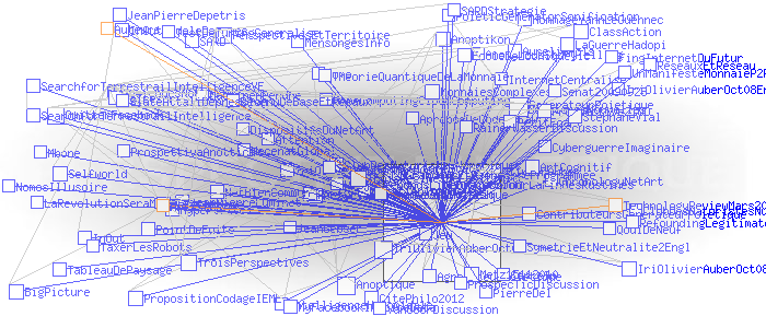 Ceci est une version archivée de OlivierAuber à 2021-05-26 22:16:09. Olivier Auber(note rédigée en 2010, mise à jour en 2019)![]() Photo by Yann Minh, Licence Art Libre, compatible CC by Sa. Artist and independent researcher, affiliated to the Center Leo Apostel for Interdisciplinary Studies at the Vrije Universiteit Brussel (CLEA) / Evolution, Complexity and COgnition group (ECCO), and at Global Brain Institute. QUID ? (en français dans le texte) Je suis une sorte de chercheur indépendant dans le domaine de l’expérimentation culturelle et des réseaux. Indépendant, oui, mais je suis amené à travailler en liaison avec de nombreux laboratoires de recherche dans des domaines très variés. Certains de mes projets passés ou en cours sont présentés sur la plate-forme KM2.NET. J'ai fondé deux sociétés : le Laboratoire Culturel A+H qui a produit pas mal de jolis projets architecturaux et muséographiques, et Navidis, spécialisée dans la représentation cartographique et en réalité virtuelle de territoires. Puis il m'arrive de faire le consultant, en Afrique, au Moyen-Orient ou ailleurs. Tout cela peut sembler très proche de la technique, mais ce qui m’intéresse est la place que celle-ci peut avoir dans notre vie, réelle ou imaginaire. Ma grande idée s’intitule la Perspective Numérique. C’est bien d’avoir une grande idée dans la vie. C’est pas tous les jours facile à vivre mais ça réchauffe le cœur quand il fait froid dehors. Et puis on s’y raccroche quand on ne comprend plus rien, ce qui m’arrive souvent, bien évidemment. L’un de mes plus anciens projets se nomme le Générateur poiétique. Il s’agit à la fois d’une expérience d'interaction collective temps réel sur les réseaux, et d’une recherche, disons, sur la position anthropologique que ces réseaux sont susceptibles de prendre dans l'avenir. Participer à une session du Générateur poïétique est à mon sens une bonne manière de saisir ce qu’est cette grande idée : la Perspective Numérique prolonge la perspective spatiale inventée à la Renaissance. Il n’est plus question ici de « points de fuite » mais de « codes de fuite ». Les fuyantes sont elles transformées en « temps de fuite ». Quel rapport avec le plancher des vaches ? Très simple : dans l’internet, les territoires sont définis par des codes ; des codes sources, des adresses ip, des clés cryptographiques, etc. Chaque territoire, organisé selon une forme plus ou moins visible de Perspective Numérique, tend à s’auto reproduire suivant un processus autopoïétique. Et tous ces territoires en relation les uns avec les autres forment eux-mêmes un seul et même système autopoïétique. Mon but dans la vie est de contribuer à mettre quelques esprits en marche* et de renforcer ceux qui sont déjà en route. Nouveau (2019) : je viens de publier un bouquin : ANOPTIKON, une exploration de l'internet invisible ! (*) ce truc a été écrit bien avant Macron et n'a définitivement rien à voir avec lui ;-) EN SAVOIR PLUS