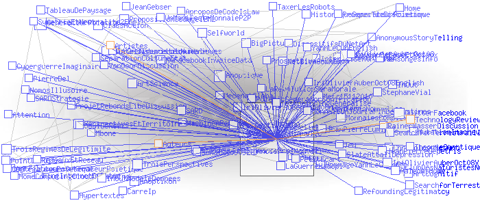 Olivier Auber(note rédigée en 2010, mise à jour en 2019)![]() Photo by Yann Minh, Licence Art Libre, compatible CC by Sa. Artist and independent researcher, affiliated to the Center Leo Apostel for Interdisciplinary Studies at the Vrije Universiteit Brussel (CLEA) / Evolution, Complexity and COgnition group (ECCO), and at Global Brain Institute. QUID ? (en français dans le texte) Je suis une sorte de chercheur indépendant dans le domaine de l’expérimentation culturelle et des réseaux. Indépendant, oui, mais je suis amené à travailler en liaison avec de nombreux laboratoires de recherche dans des domaines très variés. Certains de mes projets passés ou en cours sont présentés sur la plate-forme KM2.NET. J'ai fondé deux sociétés : le Laboratoire Culturel A+H qui a produit pas mal de jolis projets architecturaux et muséographiques, et Navidis, spécialisée dans la représentation cartographique et en réalité virtuelle de territoires. Puis il m'arrive de faire le consultant, en Afrique, au Moyen-Orient ou ailleurs. Tout cela peut sembler très proche de la technique, mais ce qui m’intéresse est la place que celle-ci peut avoir dans notre vie, réelle ou imaginaire. Ma grande idée s’intitule la Perspective Numérique. C’est bien d’avoir une grande idée dans la vie. C’est pas tous les jours facile à vivre mais ça réchauffe le cœur quand il fait froid dehors. Et puis on s’y raccroche quand on ne comprend plus rien, ce qui m’arrive souvent, bien évidemment. L’un de mes plus anciens projets se nomme le Générateur poiétique. Il s’agit à la fois d’une expérience d'interaction collective temps réel sur les réseaux, et d’une recherche, disons, sur la position anthropologique que ces réseaux sont susceptibles de prendre dans l'avenir. Participer à une session du Générateur poïétique est à mon sens une bonne manière de saisir ce qu’est cette grande idée : la Perspective Numérique prolonge la perspective spatiale inventée à la Renaissance. Il n’est plus question ici de « points de fuite » mais de « codes de fuite ». Les fuyantes sont elles transformées en « temps de fuite ». Quel rapport avec le plancher des vaches ? Très simple : dans l’internet, les territoires sont définis par des codes ; des codes sources, des adresses ip, des clés cryptographiques, etc. Chaque territoire, organisé selon une forme plus ou moins visible de Perspective Numérique, tend à s’auto reproduire suivant un processus autopoïétique. Et tous ces territoires en relation les uns avec les autres forment eux-mêmes un seul et même système autopoïétique. Mon but dans la vie est de contribuer à mettre quelques esprits en marche* et de renforcer ceux qui sont déjà en route. Nouveau : je viens de publier deux bouquins : ANOPTIKON, une exploration de l'internet invisible (FYP édition (2019) (très sérieux) et Le futur de l'avion (FYP édition 2020) (juste pour rire). (*) ce truc a été écrit bien avant Macron et n'a définitivement rien à voir avec lui ;-) EN SAVOIR PLUS