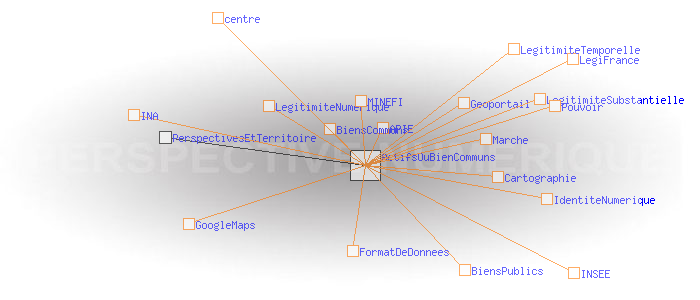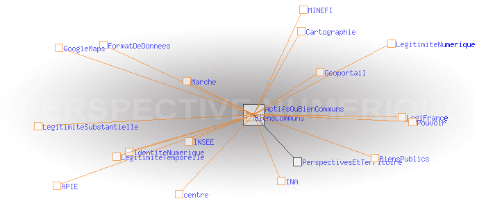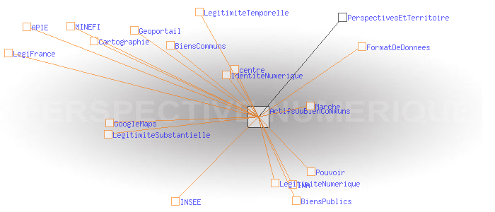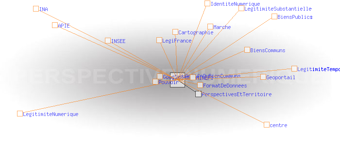 Le territoire et le régime de légitimité temporel Legitimité substantielle: valorisation des actifs ou Biens communs?L’Etat et les collectivités territoriales tentent de réformer leur légitimité substantielle en montrant qu’ils sont les véritables garants de l’intérêt général et des biens publics, matériels et immatériels. A ce titre, l'Etat a entrepris par exemple de restituer aux citoyens les informations dont ils sont la source. Outre le domaine de la cartographie ( Géoportail), c'est aussi le cas en matière d’audio-visuel (INA), de statistique (INSEE), de droit ( LégiFrance), et de finance publique (sites du MINEFI), etc. Cela ne va pas sans difficultés en raison de la confidentialité de certaines données, notamment personnelles, ou du danger supposé que celles-ci soient exploitées ou détournées par des acteurs commerciaux. On retrouve là les questions de concurrence des centres et de l’ identité numérique. Il y a aussi des problèmes techniques, de format de données, etc. Mais au delà se pose un dilemme qui semble être loin de pouvoir être tranché. D’un côté, l’Etat, soucieux de la valorisation de ses actifs pour contribuer à son désendettement, veut faire commerce des biens publics immatériels. C’est ce que prône le rapport Lévy-Jouyet qui a conduit à la création au printemps 2007 de l’Agence du Patrimoine Immatériel de l’État (APIE). De l’autre, il paraît assuré que dès lors que les biens immatériels la collectivité entreraient dans le régime général du marché, ils perdraient immédiatement leur qualité des biens communs. L’Etat et à sa suite les acteurs territoriaux, pourraient à bon droit être considérés comme des entreprises commerciales comme les autres. Ils y perdraient évidemment une part de légitimité substantielle. Ce dilemme ne trouvera probablement pas de résolution dans le cadre du régime de légitimité temporelle qui, en matière d’information, tend à pousser la concurrence des centres jusqu’au paroxysme. Il en serait tout autrement dans un régime de légitimité numérique qui placerait au centre la valeur «lien», et en périphérie, celle du capital. Géoportail: zoom maximum sur la place de la Bastille - présence de la signature incrustée «GEOPORTAIL» GoogleMaps: zoom maximum sur la place de la Bastille (pas de signature incrustée)