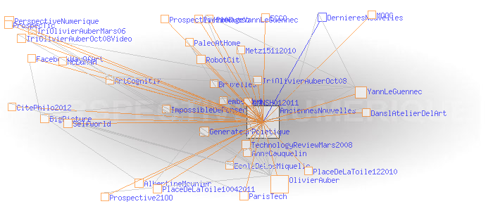 En son temps, on peut comprendre que McLuhan ait dit : « Notre planète est un village global où le centre est partout et la périphérie nulle part. », mais aujourd’hui, nos modèles de perception sculptés par les réputés "réseaux sociaux" convergent au contraire vers un nombre réduit de centres bien tangibles. Le village de McLuhan est maintenant hypercentralisé, à la fois par des serveurs et par des codes ou des normes. Chacun de ces centres tend à instituer des formes de perspective que nos modèles de perception interrogent peu ou prou : en quoi sont-elles légitimes ? C’est précisément la question posée par l’expérience dite du "générateur poiétique" ; sorte de modèle des "réseaux sociaux" actuels. Le générateur poiétique peut fonctionner sur l’internet soit suivant une perspective physiquement centralisée - un serveur synchronisant les échanges ; on parle alors d’une "perspective temporelle" -, soit suivant une autre dénuée de centre physique - un simple code ou signe de reconnaissance arbitraire faisant l’affaire ; on parle cette fois d’une "perspective numérique"- . Si tout va bien, une expérience du générateur poiétique pourrait avoir lieu pendant l’intervention. Chacun est convié à y participer, via mobile (Iphone ou Android) ou sur le web : http://play.poietic-generator.net//