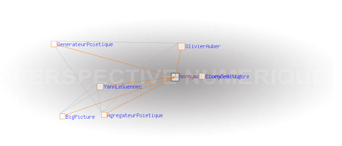 Anonymous StorytellingSome examples, between art and politicsQuelques exemples, entre art et activisme politique. ![]() Source : RWW / Anonymous (2011) Source : Banana République (2008) Copyleft 2005 YannLeGuennec, oeuvre dérivée du Générateur Poïétique 1986-2005 OlivierAuber (LicenceArtLibre?) Source : BIGPICTURE (2006) Agrégateur poïétique by YannLeGuennec 2004 ![]() Source : Générateur Poétique (1986-2011)