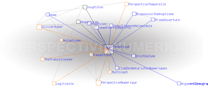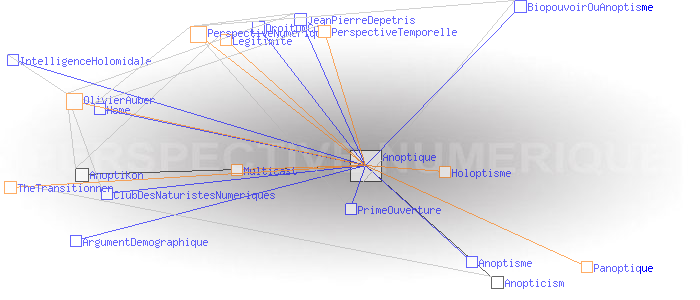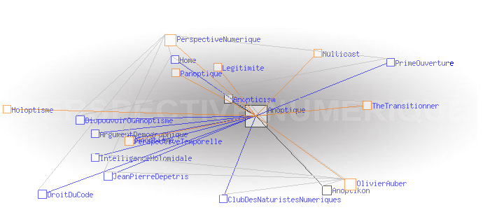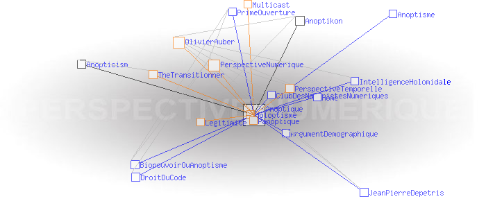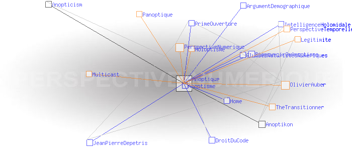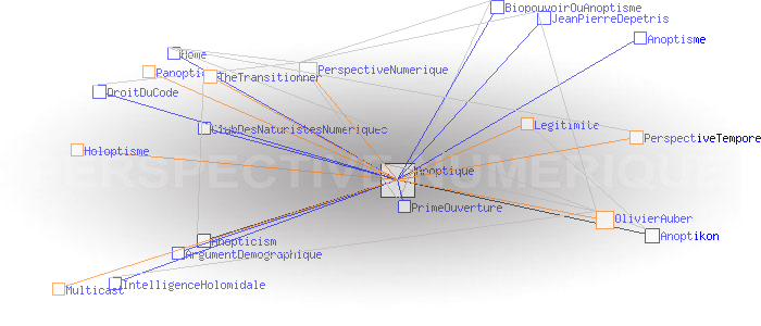 Concept de l'anoptismeAnoptism (english)Le concept d'Anoptisme est bien entendu à l'opposé de celui du " panoptisme", du grec "pan" (tout), qui "est un type d'architecture carcérale imaginée par le philosophe Jeremy Bentham" dont "'l'objectif [...] est de permettre à un individu d'observer tous les prisonniers sans que ceux-ci ne puissent savoir s'ils sont observés, créant ainsi un « sentiment d'omniscience invisible » chez les détenus" (1). Le concept d' "Anoptisme" s'écarte aussi dans une certaine mesure de celui de l'"Holoptisme", du grec "holos" (entier, tout, totalité), qui "consiste en un espace physique ou virtuel dont l'architecture est intentionnellement conçue pour donner à ses acteurs la faculté de voir et percevoir l'ensemble de ce qui s'y déroule" (2). A en juger par l'opposition des racines grecques, on pourrait même croire qu'il y a un antagonisme radical entre Anoptique et Holoptique. Ce n'est pas tout à fait le cas : si l'Anoptisme, comme l'Holoptisme, "visent à fournir à l'individu une représentation modélisée [...] de l'espace dans lequel il évolue" (3), l'Anoptisme fait son deuil de l'idée de "totalité" de cet espace comme de l'"objectivité" de sa représentation , et insiste au contraire sur l'arbitraire et la subjectivité des points de vue qui président aux architectures et aux modèles qui les déterminent. Pour l'Anoptisme, les relations humaines ne sont pas réductibles à la mise en place d'une boucle de rétro-action cybernétique entre le groupe et l'individu ; l'essentiel est définitivement invisible à nos yeux. Le deuil de l'objectivité est rendu supportable par le fait que chacun est potentiellement auteur des points de vue, et acteur des règles et des codes qu'ils mettent en oeuvre. L'Anoptisme entend fonder de cette manière la légitimité d'une " perpective numérique" à mettre en oeuvre au sein des systèmes sociaux. Pratiquement, les réseaux centrés/décentralisés mettent en œuvre une " perspective temporelle" dont le centre est le "point de fuite" d'où émerge le temps subjectif du collectif. Classiquement, ce centre est un serveur. Les réseaux distribués mettent en œuvre une " perpective numérique" dont le "code de fuite" est le protocole sous couvert duquel le collectif échange Exemples: Multicast, BGP, Bitcoin, etc. Ces deux perspectives propres aux réseaux sont dites "anoptiques" en référence à la perspective optique de la Renaissance. Perspective optique et perspectives anoptiques possèdent en effet des caractéristiques symbolique similaires à celles de la perspective optique. En particulier, de la même manière que les Renaissants ont décrit les critères de " construction légitime" de la perspective optique, il possible de définir ceux permettant de créer une "perspective anoptique légitime". Ces critères n'ont plus rien de géométriques comme c'était le cas de la perspective optique, ils sont d'ordre cognitif. Ces idées sont développées dans le livre "Anoptikon, une exploration de l'internet invisible, échapper à la main de Darwin" (FYP éditions 2019) OlivierAuber (1) FrWikiPedia:Panoptique (2) TheTransitionner: Holoptisme (3) Ibid. (4) perspective-numerique.net ANOPTIQUE a aussi été un groupe de recherche informel entre 2004 et 2014 : http://anoptique.com Pages ayant un lien vers la page courante : Anopticism Anoptikon Anoptisme ArgumentDemographique BiopouvoirOuAnoptisme ClubDesNaturistesNumeriques DroitDuCode Home IntelligenceHolomidale JeanPierreDepetris PrimeOuverture