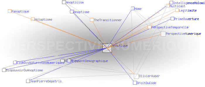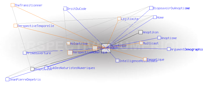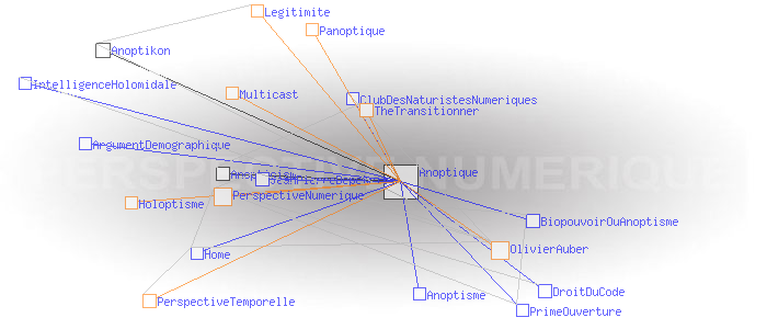Concept de l'anoptismeAnoptism (english)Le concept d'Anoptisme est bien entendu à l'opposé de celui du " panoptisme", du grec "pan" (tout), qui "est un type d'architecture carcérale imaginée par le philosophe Jeremy Bentham" dont "'l'objectif [...] est de permettre à un individu d'observer tous les prisonniers sans que ceux-ci ne puissent savoir s'ils sont observés, créant ainsi un « sentiment d'omniscience invisible » chez les détenus" (1). Le concept d' "Anoptisme" s'écarte aussi dans une certaine mesure de celui de l'"Holoptisme", du grec "holos" (entier, tout, totalité), qui "consiste en un espace physique ou virtuel dont l'architecture est intentionnellement conçue pour donner à ses acteurs la faculté de voir et percevoir l'ensemble de ce qui s'y déroule" (2). A en juger par l'opposition des racines grecques, on pourrait même croire qu'il y a un antagonisme radical entre Anoptique et Holoptique. Ce n'est pas tout à fait le cas : si l'Anoptisme, comme l'Holoptisme, "visent à fournir à l'individu une représentation modélisée [...] de l'espace dans lequel il évolue" (3), l'Anoptisme fait son deuil de l'idée de "totalité" de cet espace comme de l'"objectivité" de sa représentation , et insiste au contraire sur l'arbitraire et la subjectivité des points de vue qui président aux architectures et aux modèles qui les déterminent. Pour l'Anoptisme, les relations humaines ne sont pas réductibles à la mise en place d'une boucle de rétro-action cybernétique entre le groupe et l'individu ; l'essentiel est définitivement invisible à nos yeux. Le deuil de l'objectivité est rendu supportable par le fait que chacun est potentiellement auteur des points de vue, et acteur des règles et des codes qu'ils mettent en oeuvre. L'Anoptisme entend fonder de cette manière la légitimité d'une " perpective numérique" à mettre en oeuvre au sein des systèmes sociaux. Pratiquement, les réseaux centrés/décentralisés mettent en œuvre une " perspective temporelle" dont le centre est le "point de fuite" d'où émerge le temps subjectif du collectif. Classiquement, ce centre est un serveur. Les réseaux distribués mettent en œuvre une " perpective numérique" dont le "code de fuite" est le protocole sous couvert duquel le collectif échange Exemples: Multicast, BGP, Bitcoin, etc. Ces deux perspectives propres aux réseaux sont dites "anoptiques" en référence à la perspective optique de la Renaissance. Perspective optique et perspectives anoptiques possèdent en effet des caractéristiques symbolique similaires à celles de la perspective optique. En particulier, de la même manière que les Renaissants ont décrit les critères de " construction légitime" de la perspective optique, il possible de définir ceux permettant de créer une "perspective anoptique légitime". Ces critères n'ont plus rien de géométriques comme c'était le cas de la perspective optique, ils sont d'ordre cognitif. Ces idées sont développées dans le livre "Anoptikon, une exploration de l'internet invisible, échapper à la main de Darwin" (FYP éditions 2019) OlivierAuber (1) FrWikiPedia:Panoptique (2) TheTransitionner: Holoptisme (3) Ibid. (4) perspective-numerique.net ANOPTIQUE a aussi été un groupe de recherche informel entre 2004 et 2014 : http://anoptique.com Pages ayant un lien vers la page courante : Anopticism Anoptikon Anoptisme ArgumentDemographique BiopouvoirOuAnoptisme ClubDesNaturistesNumeriques DroitDuCode Home IntelligenceHolomidale JeanPierreDepetris PrimeOuverture