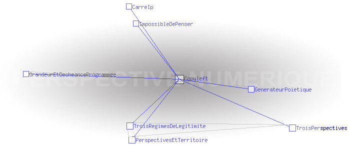 ![]() Sauf mention contraire, tous les textes publiés ici le sont sous couvert de la Licence Art Libre Vous trouverez un exemplaire de cette Licence sur le site Copyleft Attitude http://www.artlibre.org/ ainsi que sur d'autres sites. Sauf mention contraire, tous les logiciels mis en oeuvre sur ce site, sont GPL