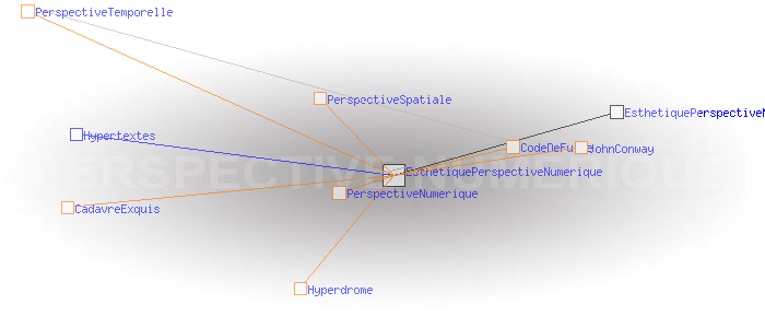 Ainsi, l’image globale du Générateur Poïétique ne se forme plus en un point particulier (le serveur) mais au niveau de l’ordinateur de chaque participant. Mais alors où est le point de fuite ? Et bien précisément dans cette sorte de fréquence commune : le code numérique partagé ! Dès lors, la « perspective temporelle » n’apparaît plus que comme un cas particulier d’une perspective plus générale : la « perspective numérique ».